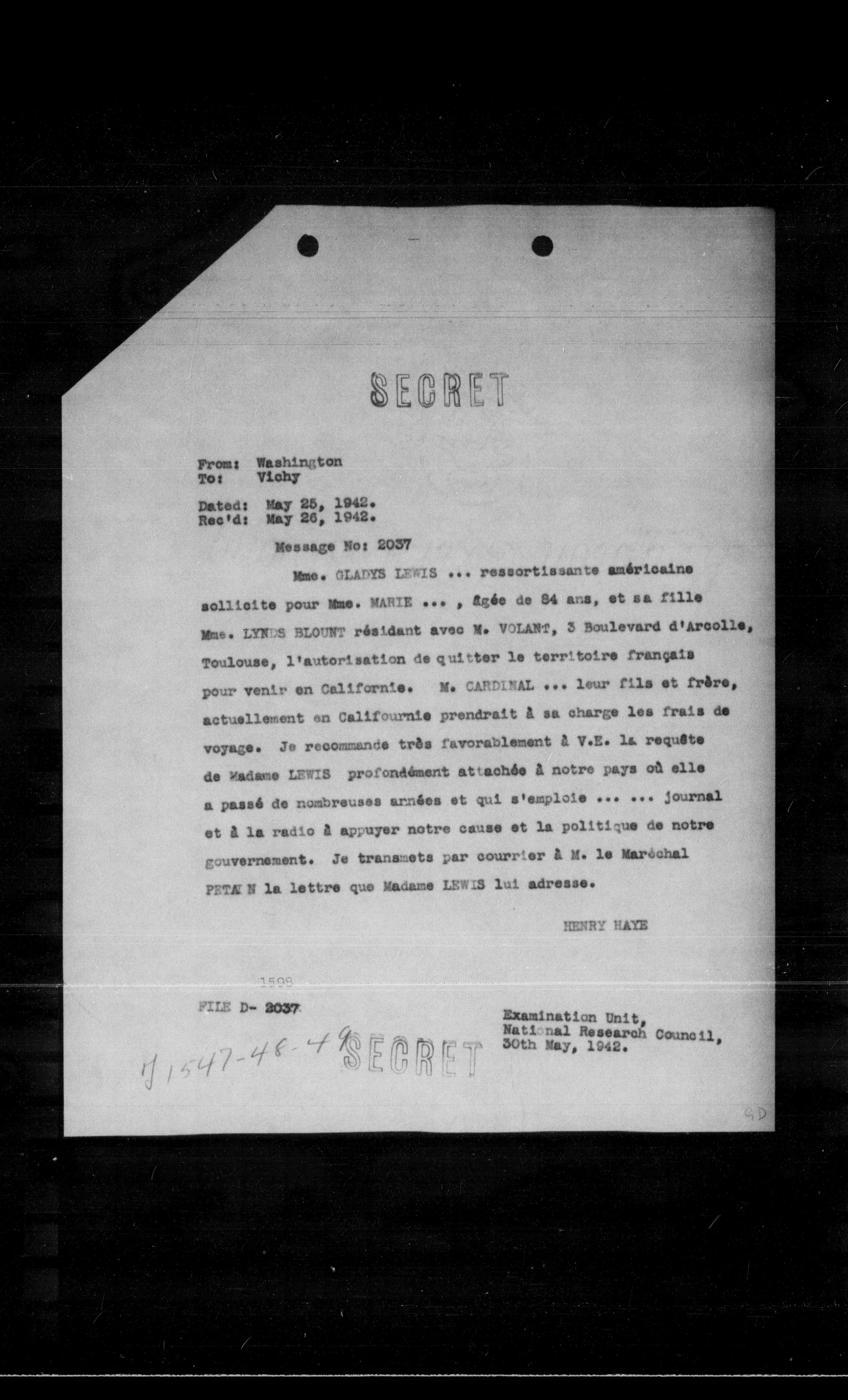 “Reel 17428 - Page 0605,” The Canadian Vichy Intercepts, accessed December 16, 2025, http://omeka.uottawa.ca/examination-unit/items/show/21366.