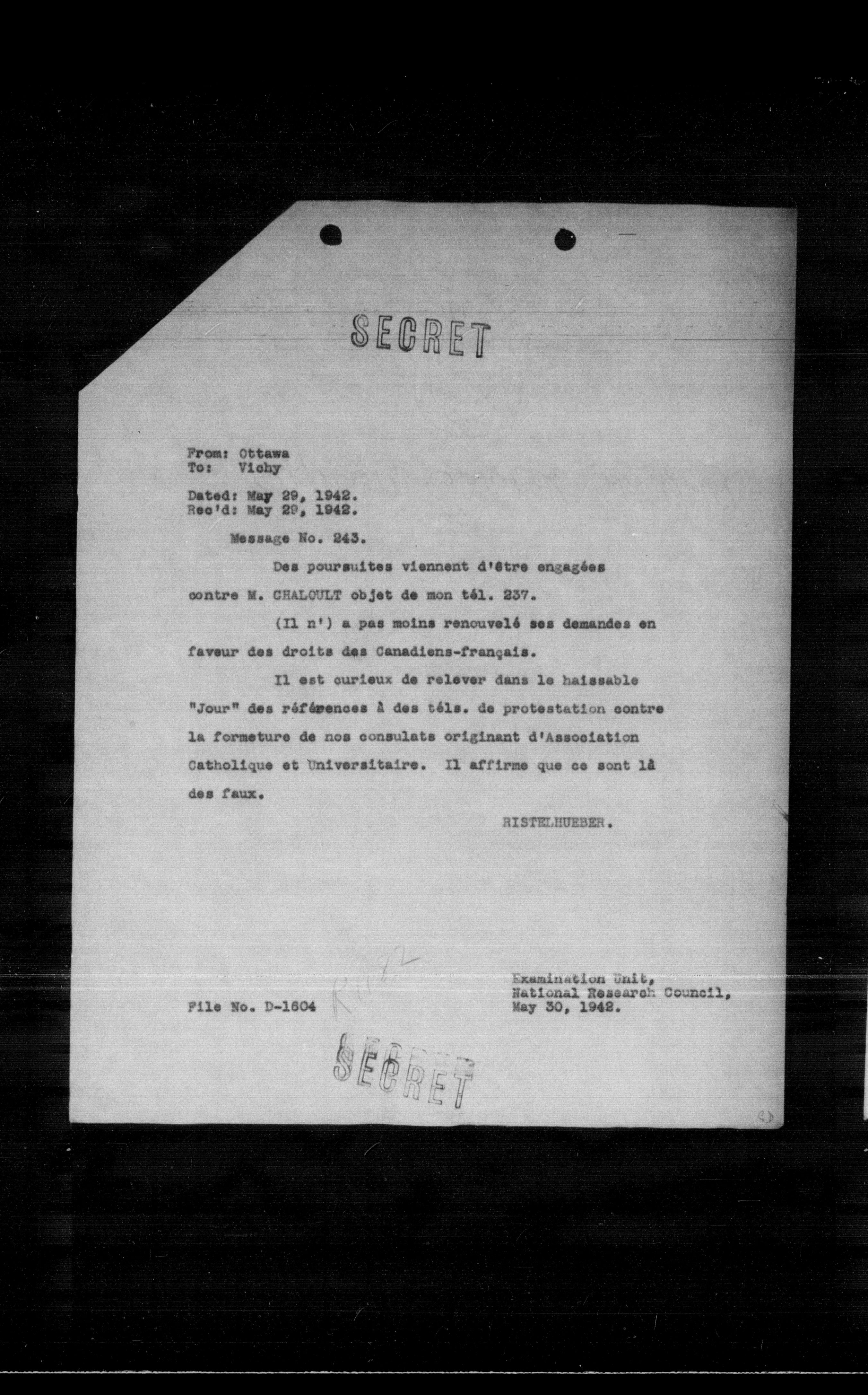 “Reel 17428 - Page 0611,” The Canadian Vichy Intercepts, accessed December 17, 2025, http://omeka.uottawa.ca/examination-unit/items/show/21372.