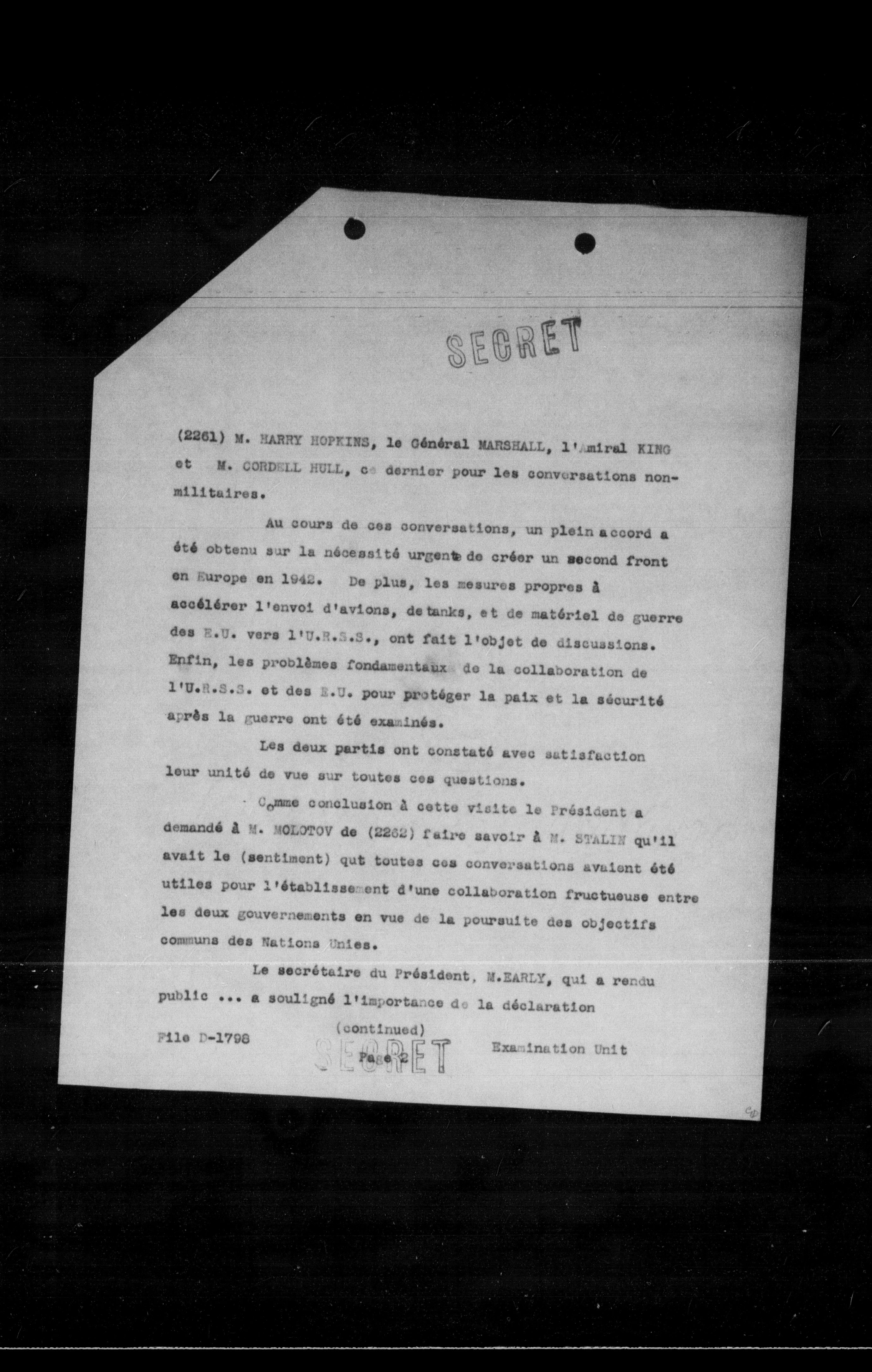 (2261) M. HARRY HOPKINS, le Général MARSHALL, l'amiral KING et M. CORDELL HULL, ce dernier pour les conversations nonmilitaires.