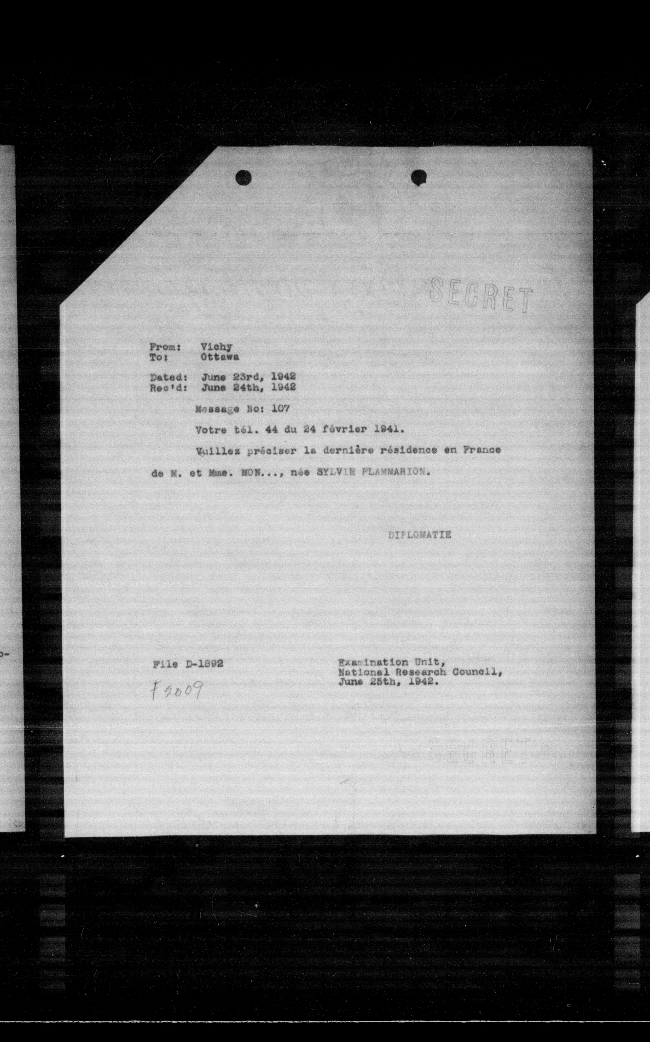 Examination Unit, National Research Council, June 25th, 1942.