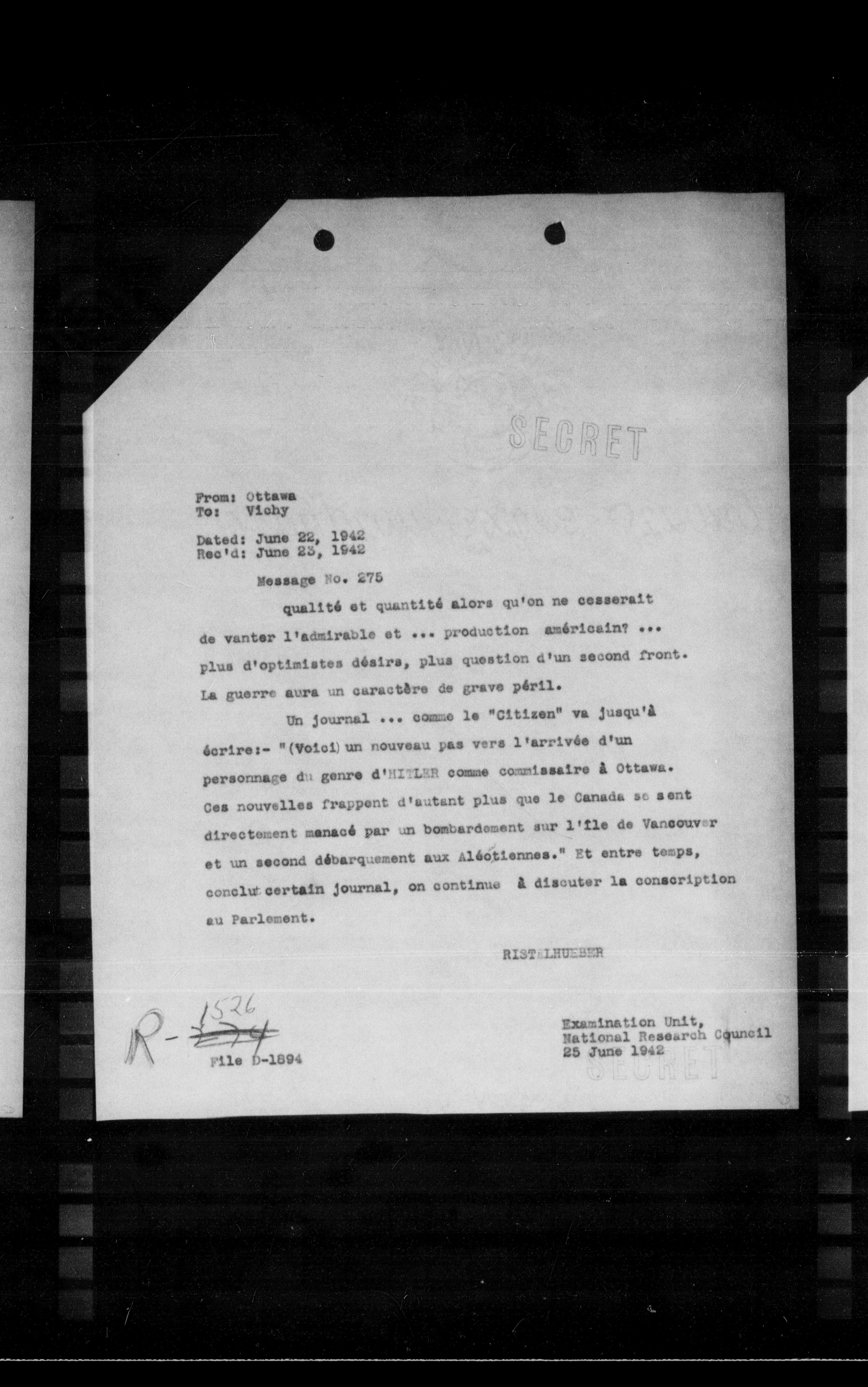 “Reel 17428 - Page 1040,” The Canadian Vichy Intercepts, accessed December 23, 2025, http://omeka.uottawa.ca/examination-unit/items/show/21801.