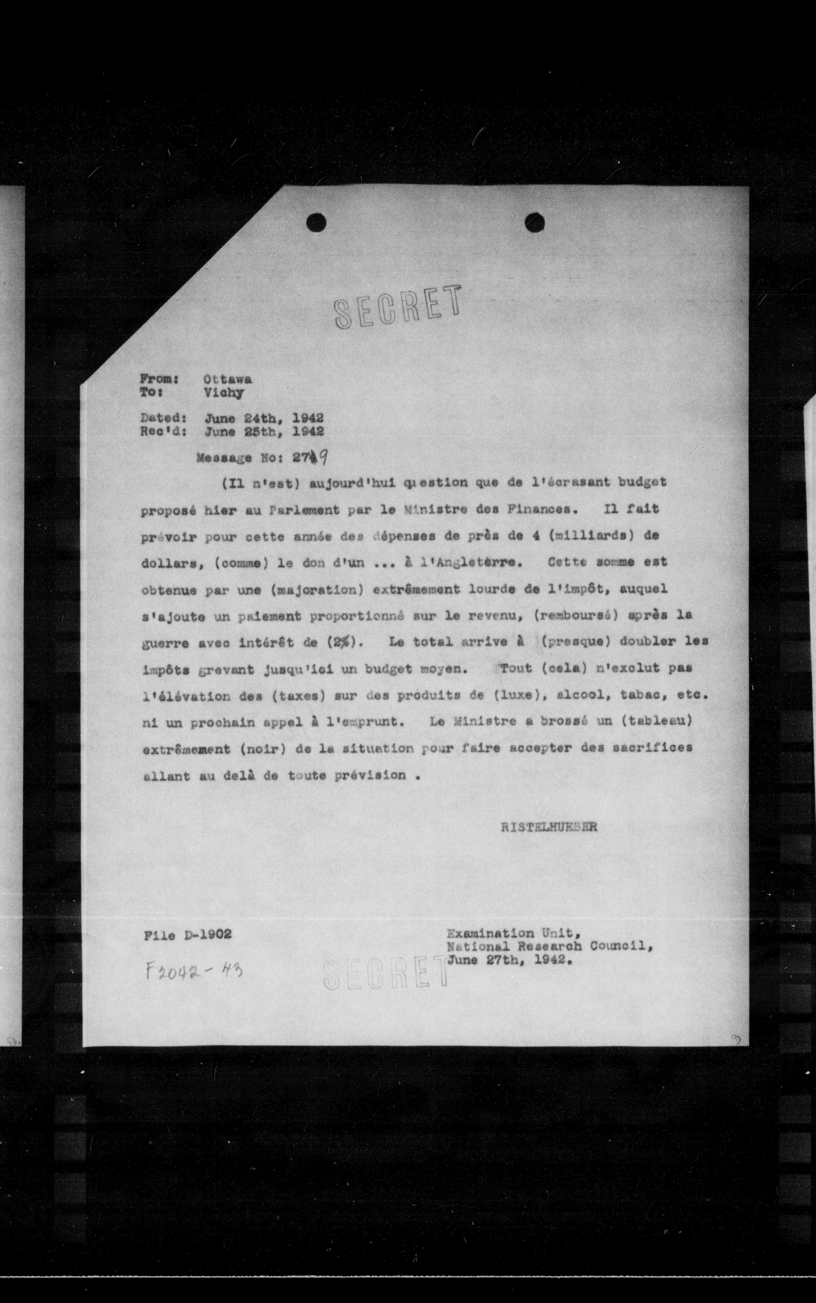 “Reel 17428 - Page 1050,” The Canadian Vichy Intercepts, accessed December 24, 2025, http://omeka.uottawa.ca/examination-unit/items/show/21811.