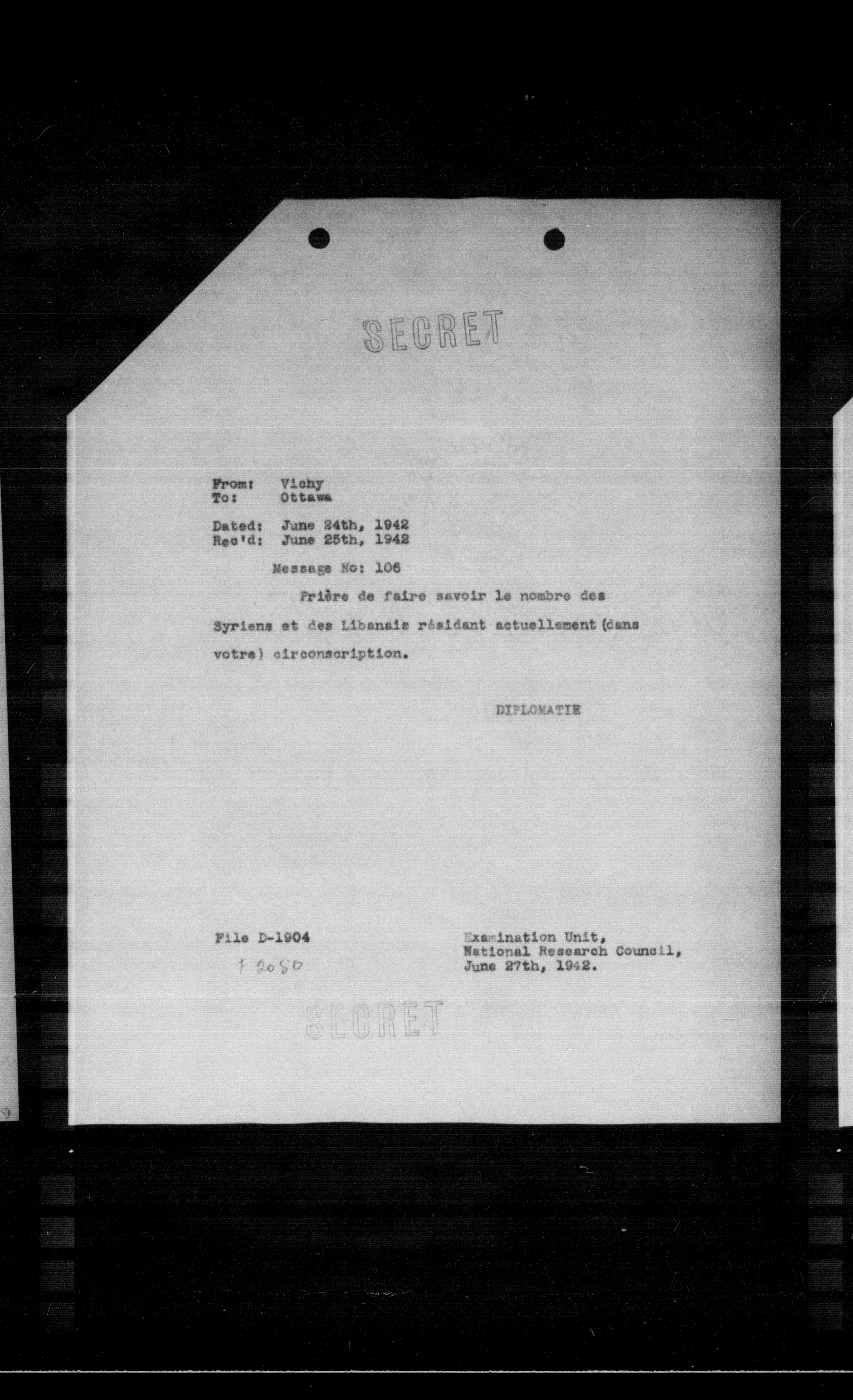 “Reel 17428 - Page 1052,” The Canadian Vichy Intercepts, accessed December 24, 2025, http://omeka.uottawa.ca/examination-unit/items/show/21813.