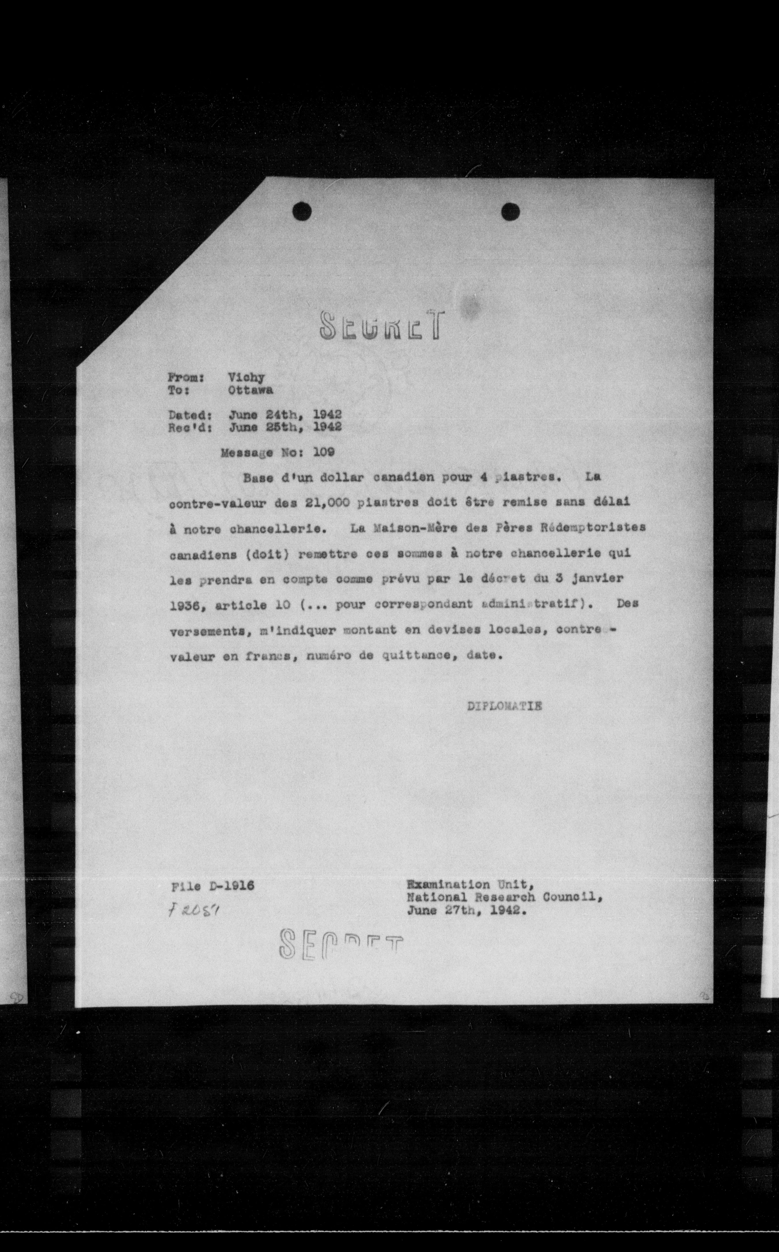 “Reel 17428 - Page 1077,” The Canadian Vichy Intercepts, accessed December 23, 2025, http://omeka.uottawa.ca/examination-unit/items/show/21838.