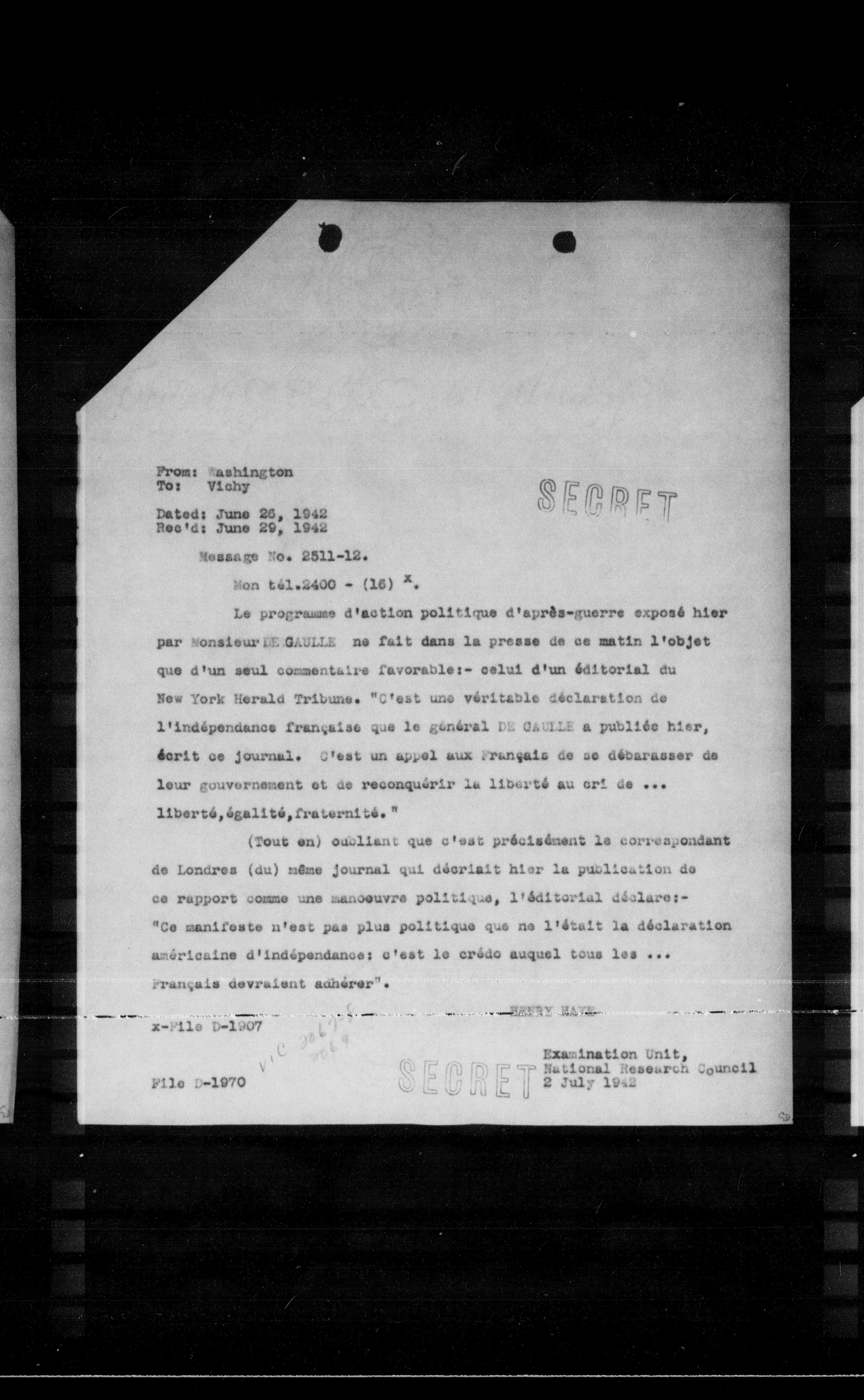 Exenination Unit, National Research Council 2 July 1942