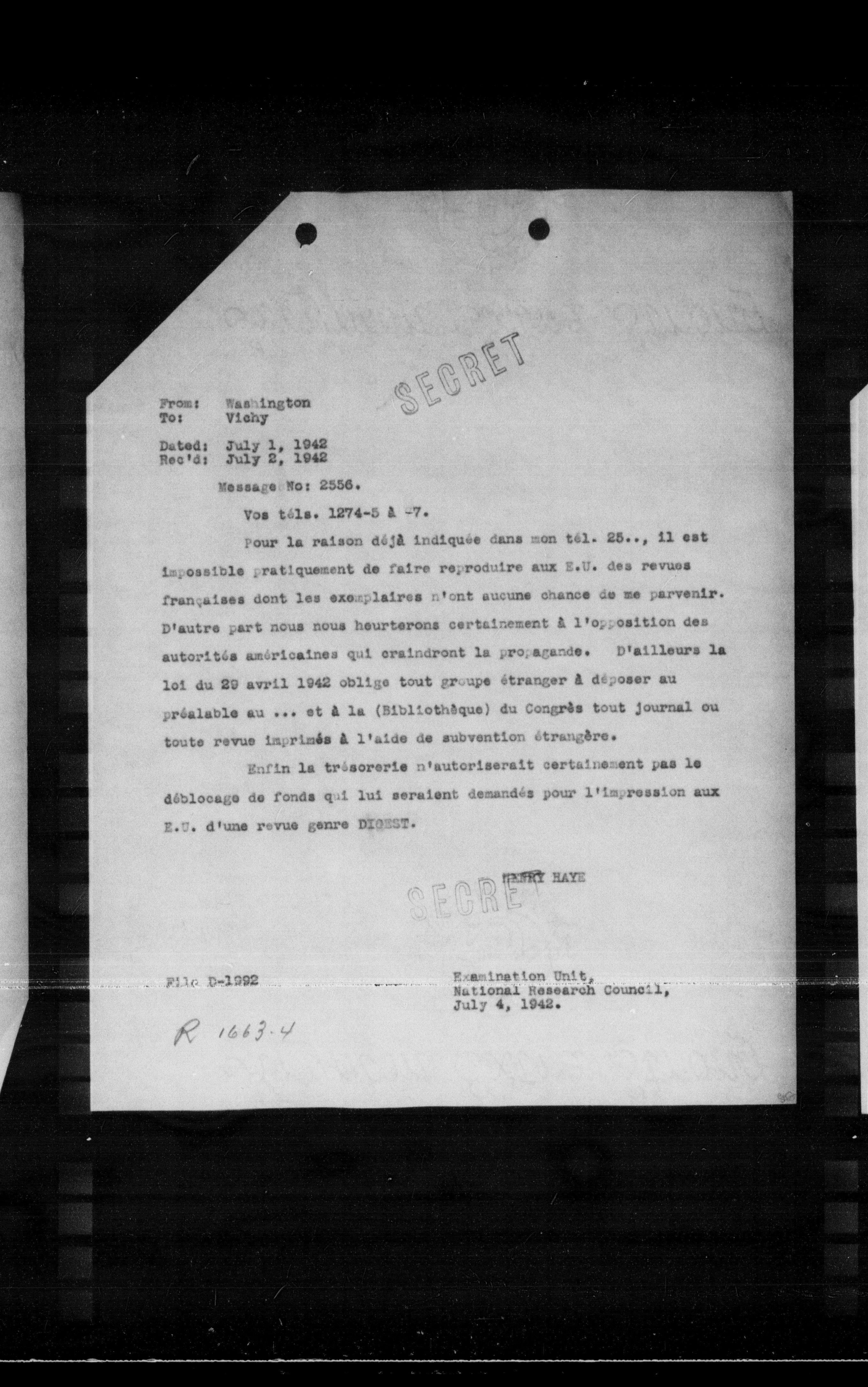 “Reel 17428 - Page 1193,” The Canadian Vichy Intercepts, accessed December 19, 2025, http://omeka.uottawa.ca/examination-unit/items/show/21954.