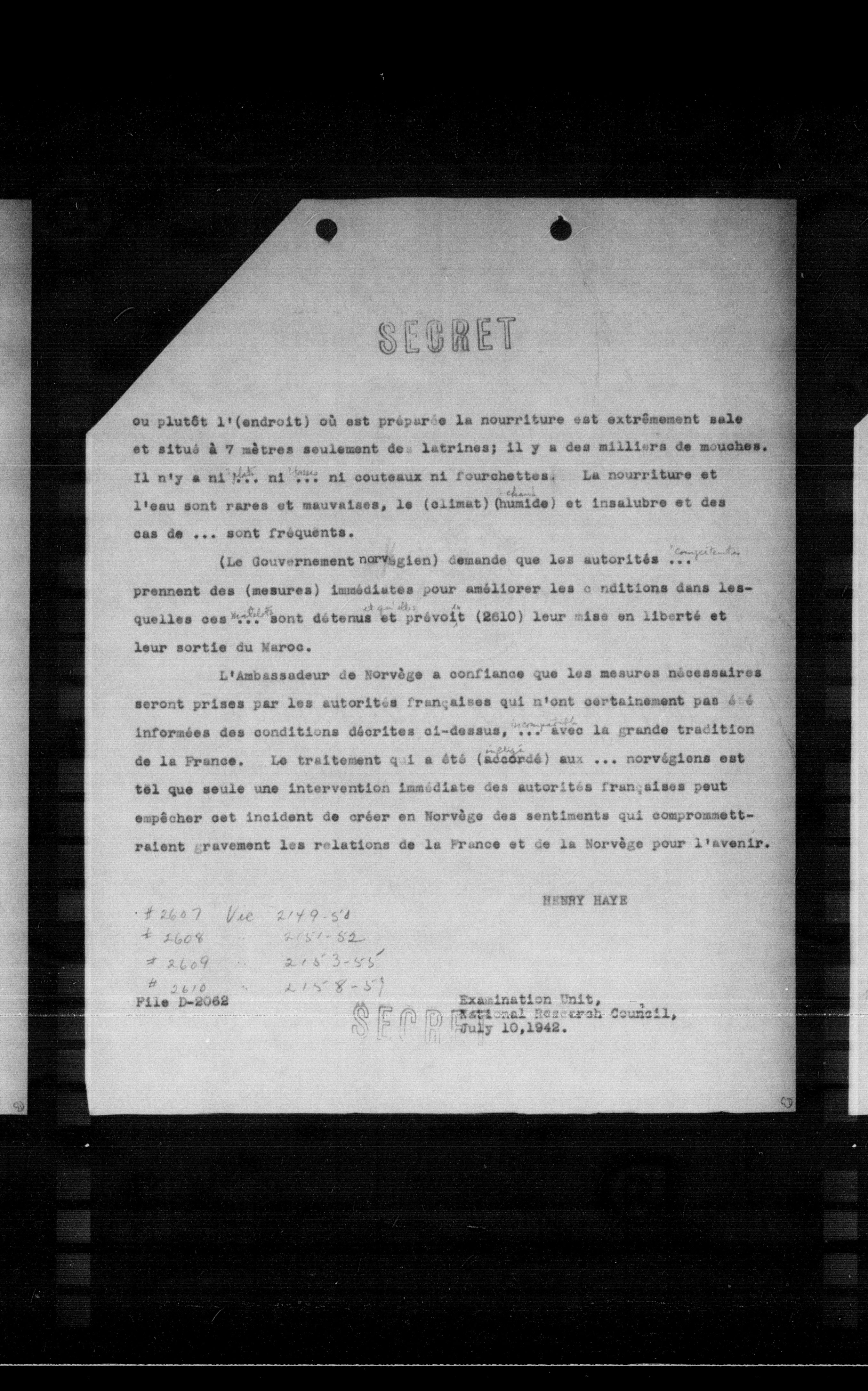 L'Ambassadeur de Norvège a confiance que les mesures nécessaires seront prises par les autorités françaises qui n'ont certainement pas é é informées des conditions décrites ci-dessus, ... avec la grande tradition de la France. Le traitement qui a été (accordé) aux ... norvégiens est tel que seule une intervention immédiate des autorités françaises peut empêcher cet incident de créer en Norvège des sentiments qui compromettraient gravement les relations de la France et de la Norvège pour l'avenir.