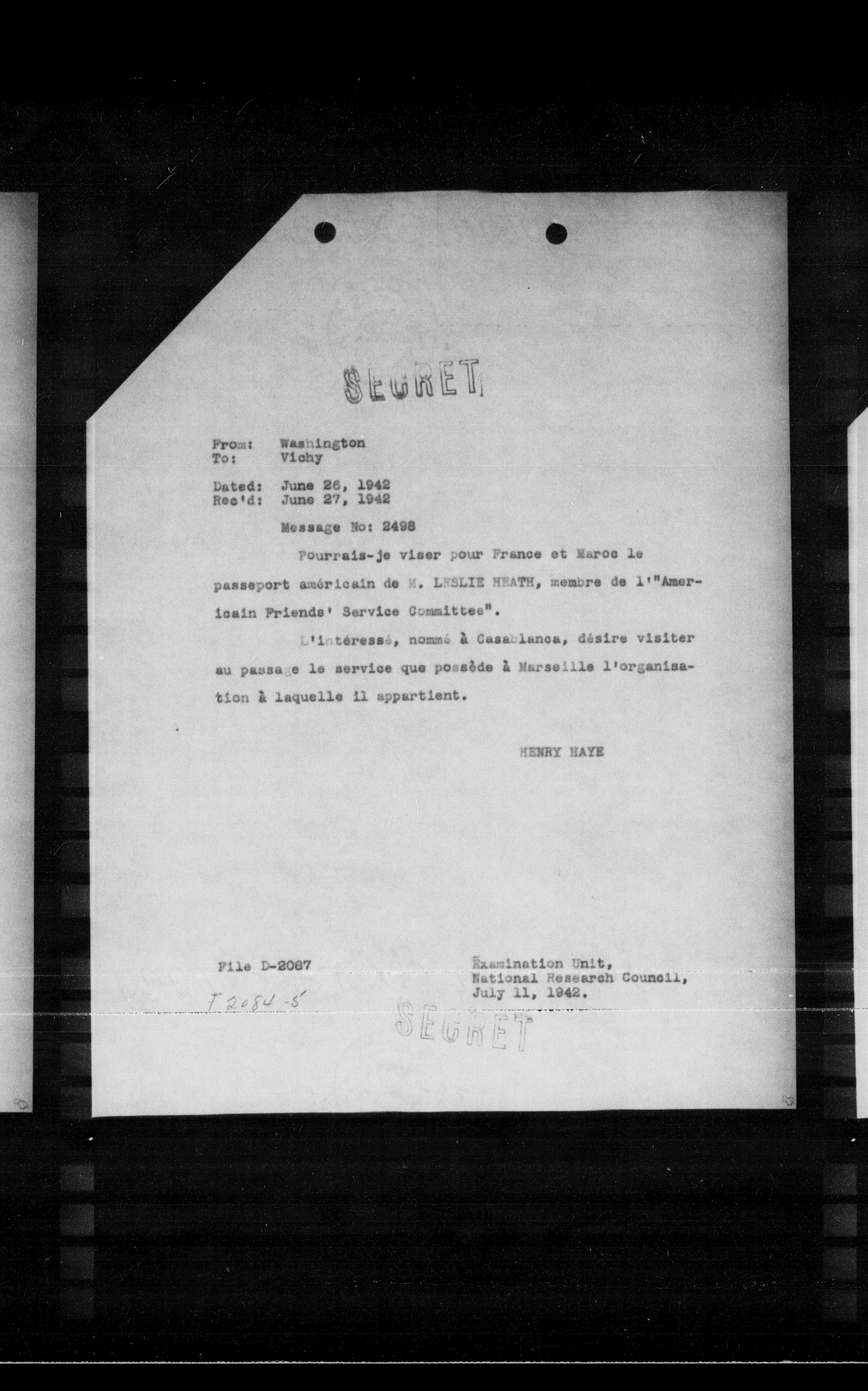 Pourrais-je viser pour France et Maroc le passeport américain de M. LESLIE MEATH, membre de l'"American Friends' Service Committee".