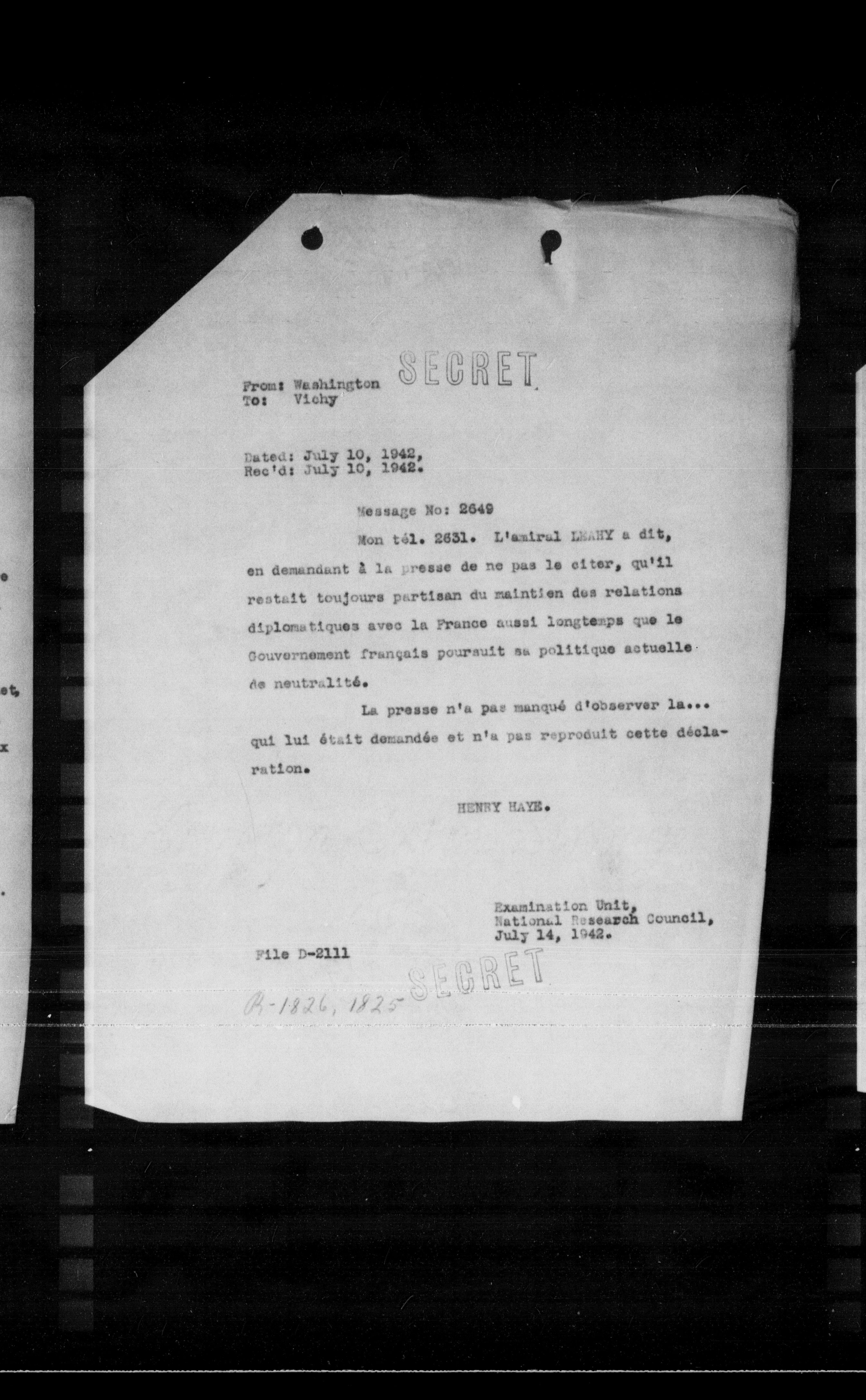 - From: Washington To: Vichy