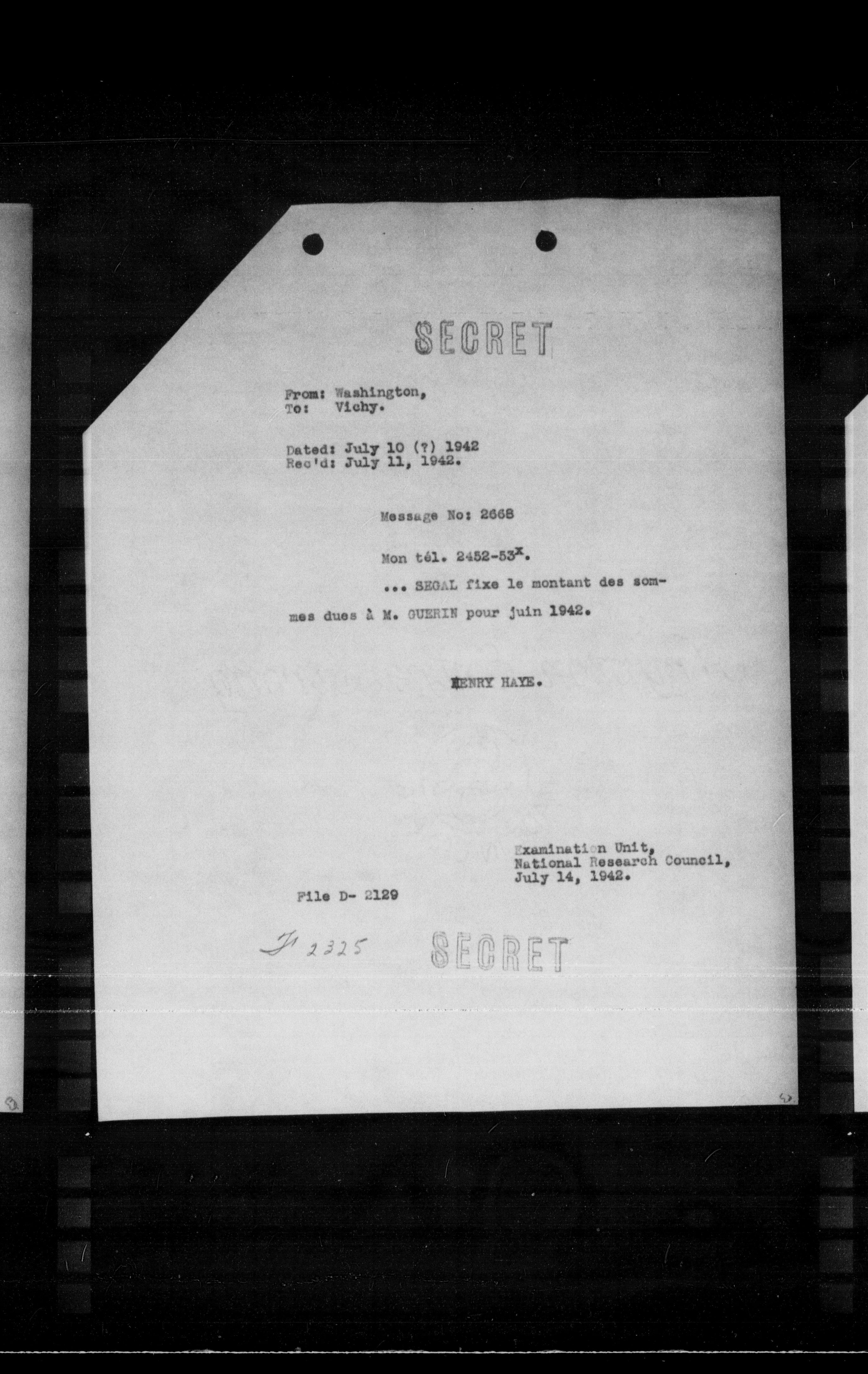 From: Washington, To: Vichy.