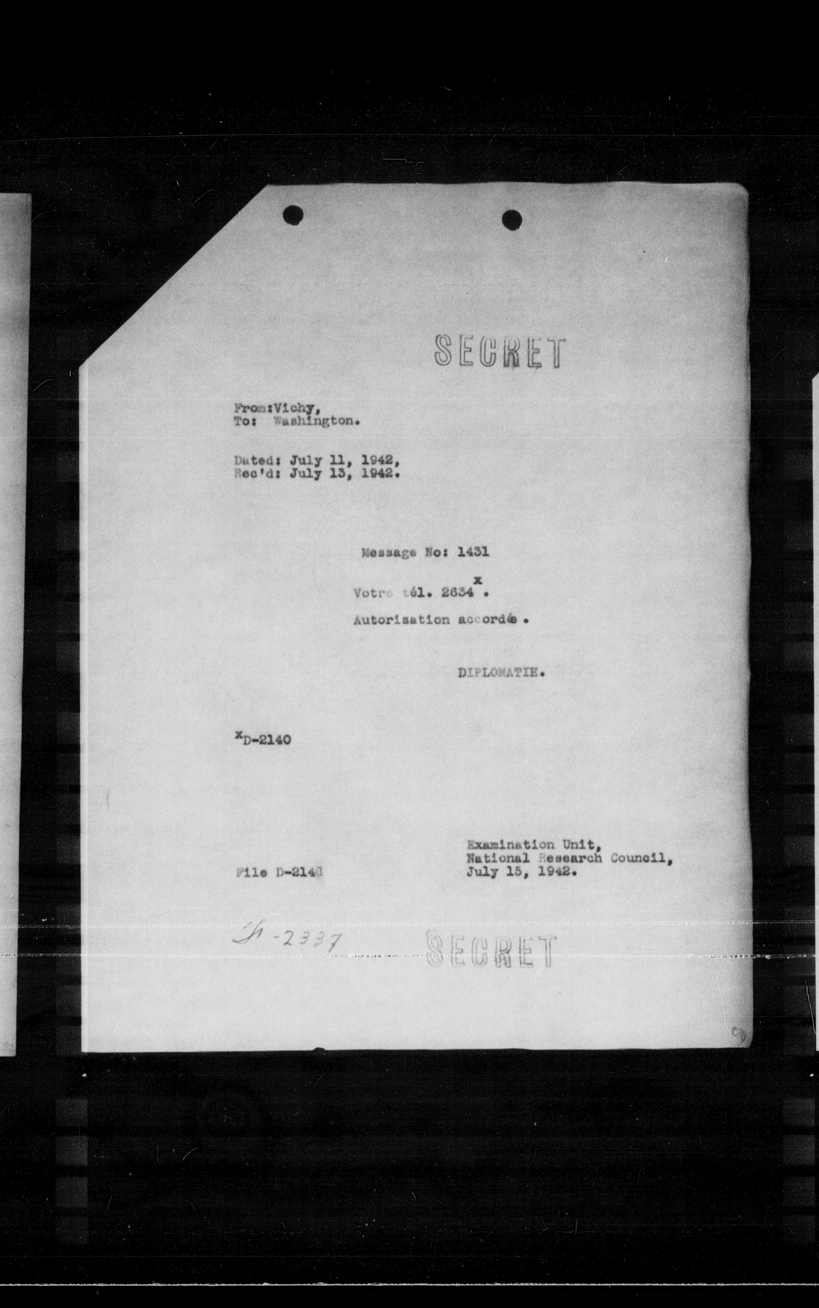 From: Vichy, To: Washington.