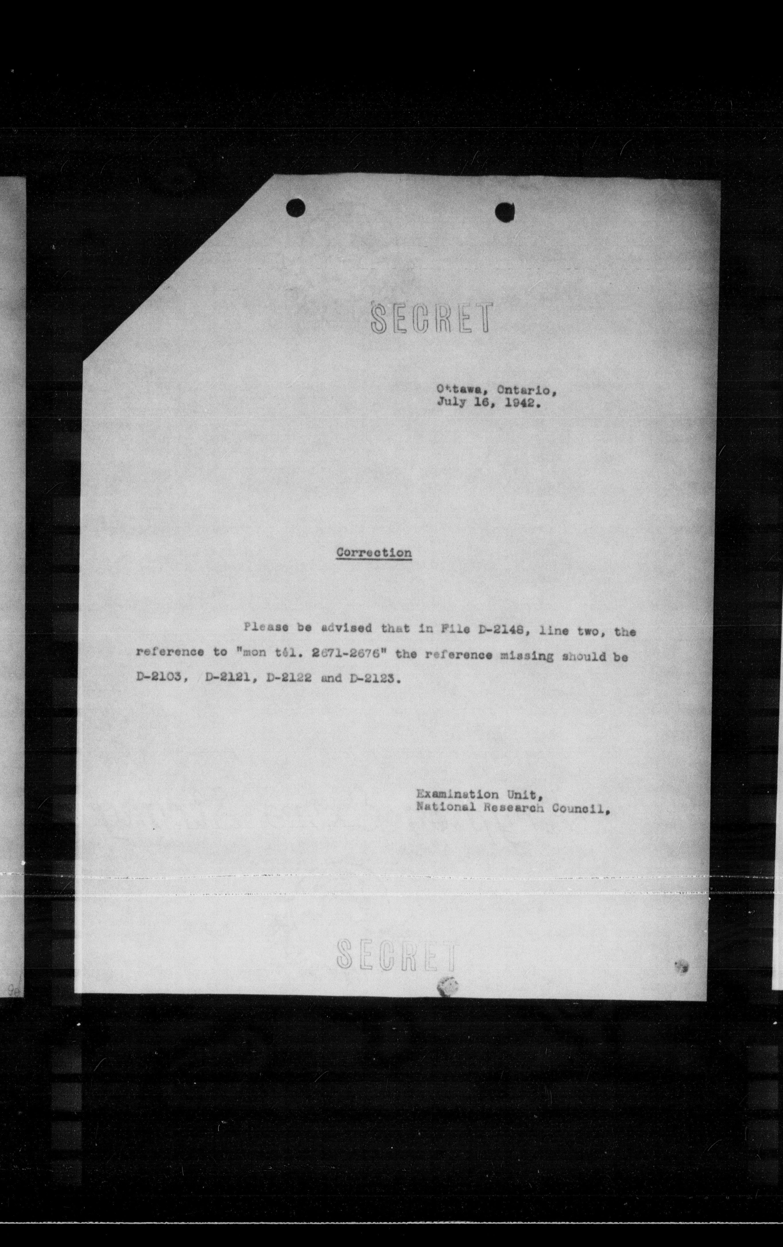 Please be advised that in File D-2148, line two, the reference to "mon t61. 2071-2676" the reference missing should be D-2103, D-2121, D-2122 and D-2123.