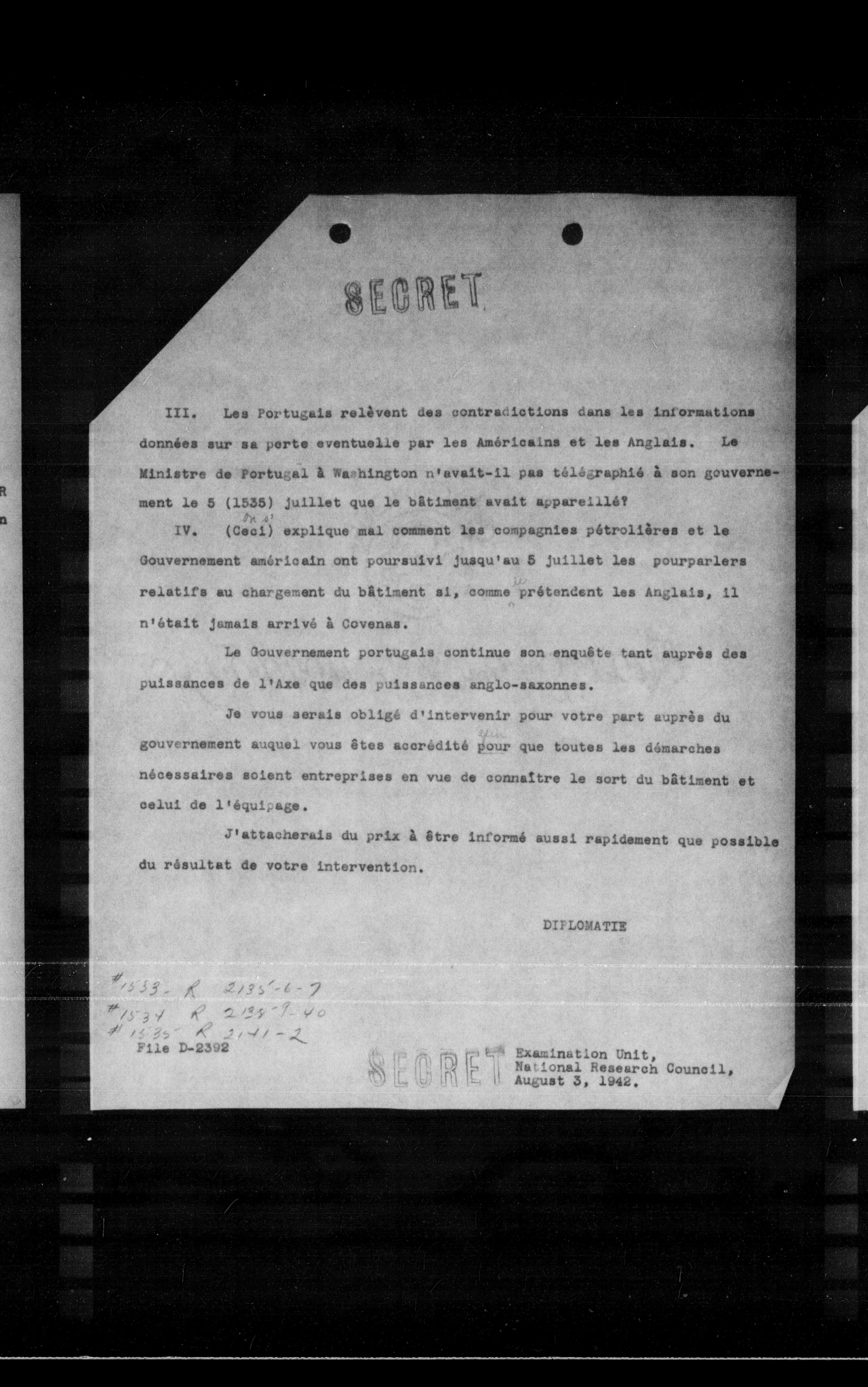 Le Gouvernement portugais continue son enquête tant auprès des puissances de l'Axe que des puissances anglo-saxonnes.