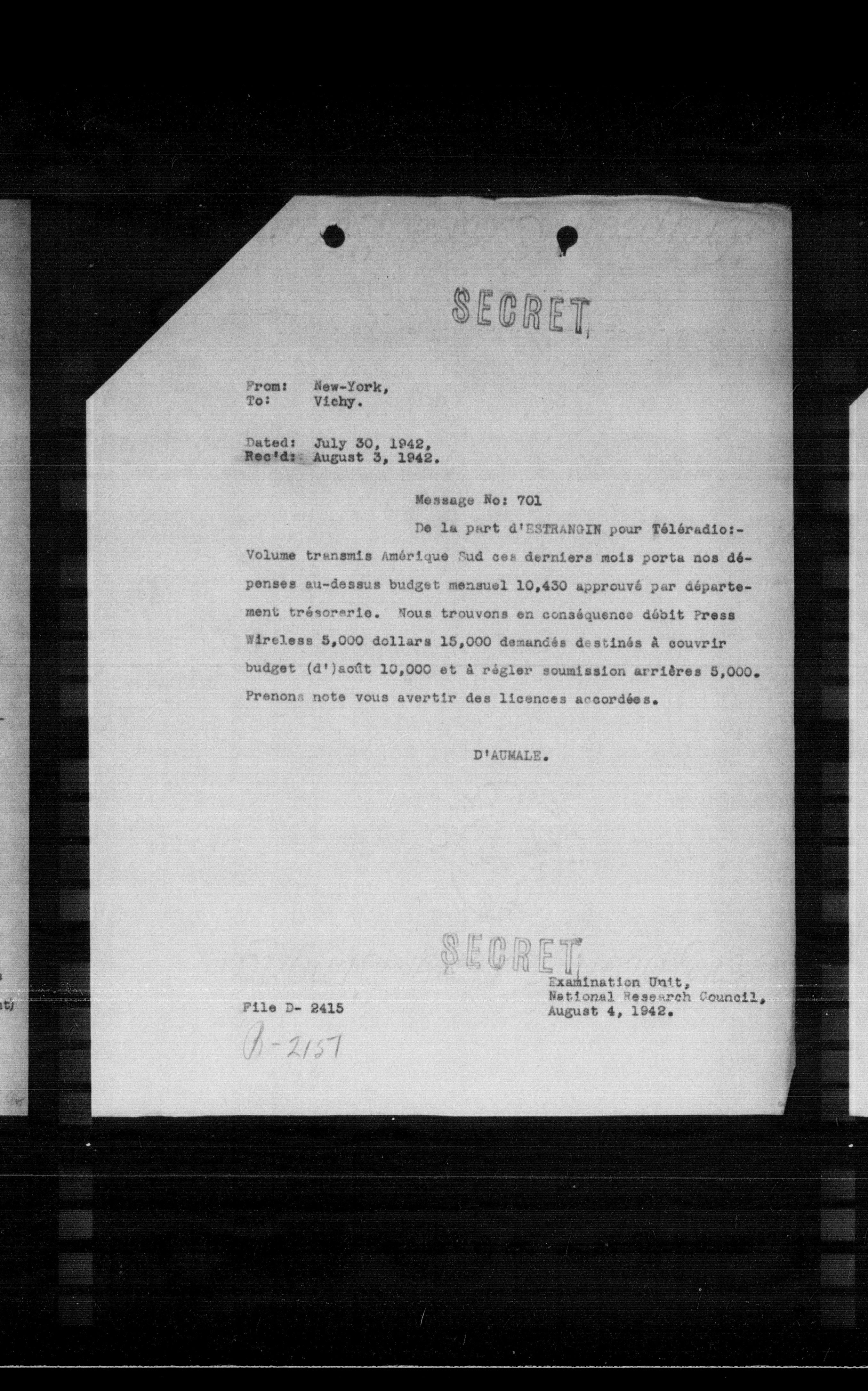 “Reel 17428 - Page 1707,” The Canadian Vichy Intercepts, accessed December 28, 2025, http://omeka.uottawa.ca/examination-unit/items/show/22468.