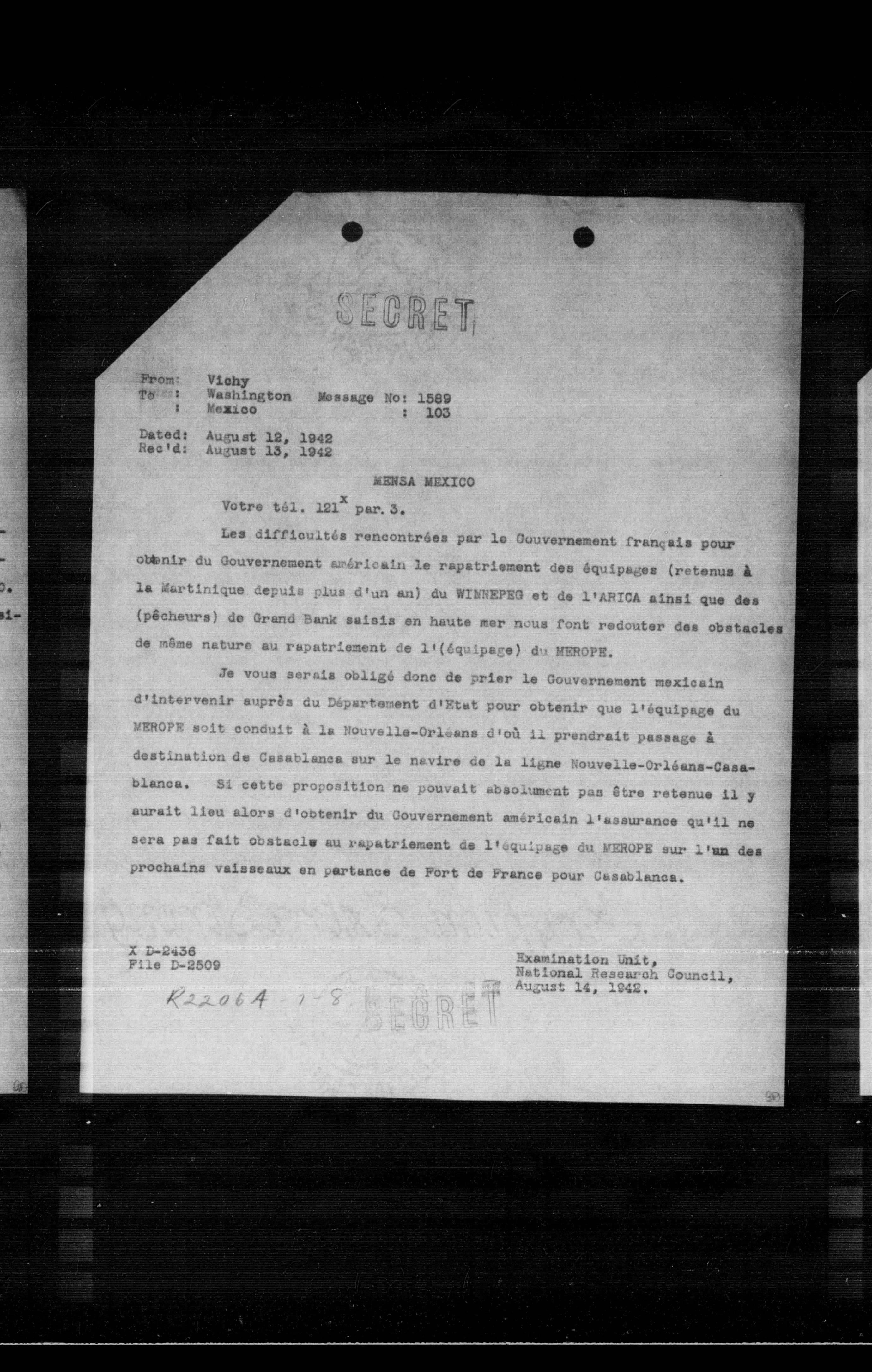 “Reel 17428 - Page 1817,” The Canadian Vichy Intercepts, accessed December 22, 2025, http://omeka.uottawa.ca/examination-unit/items/show/22578.