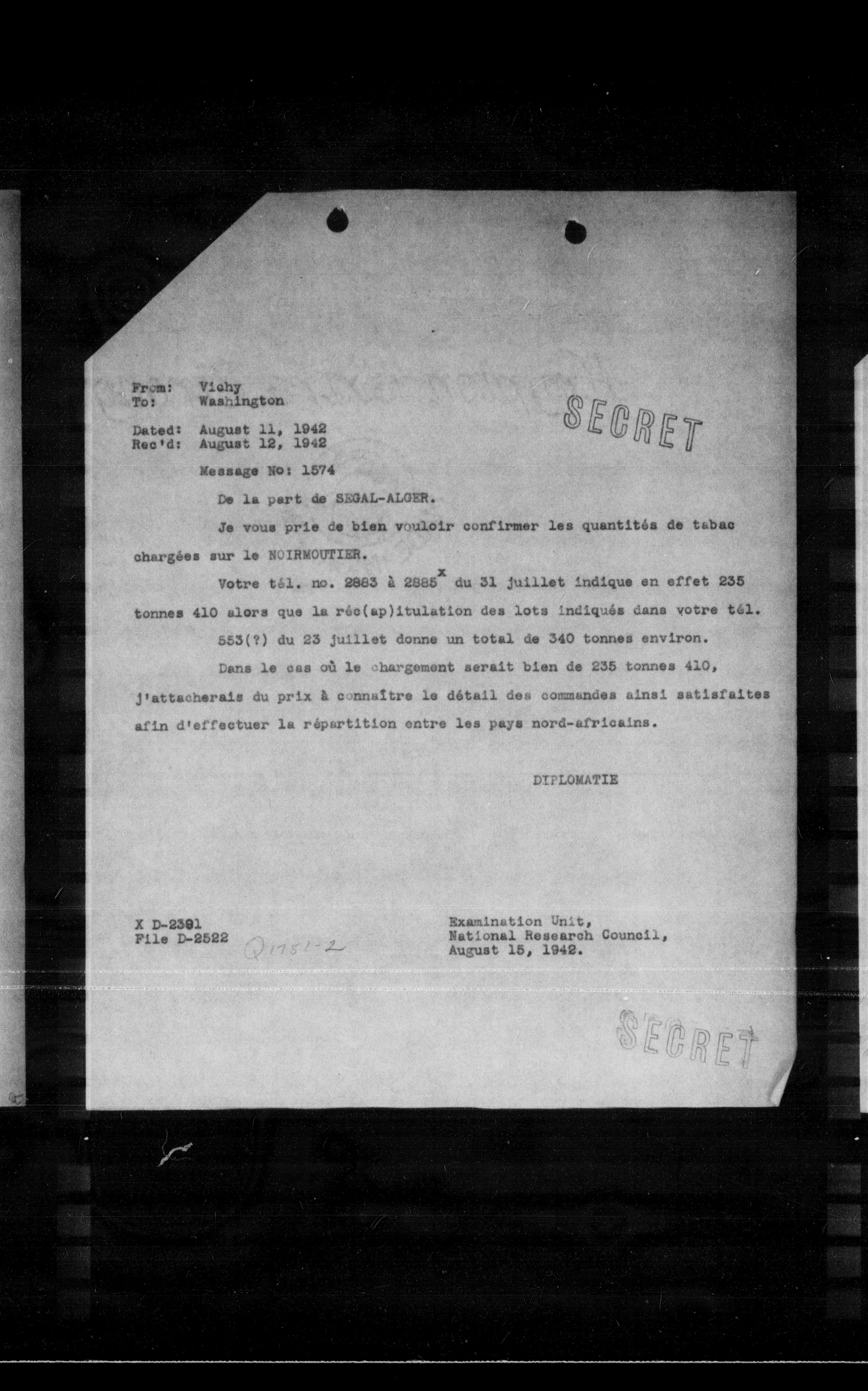 “Reel 17428 - Page 1834,” The Canadian Vichy Intercepts, accessed December 24, 2025, http://omeka.uottawa.ca/examination-unit/items/show/22595.