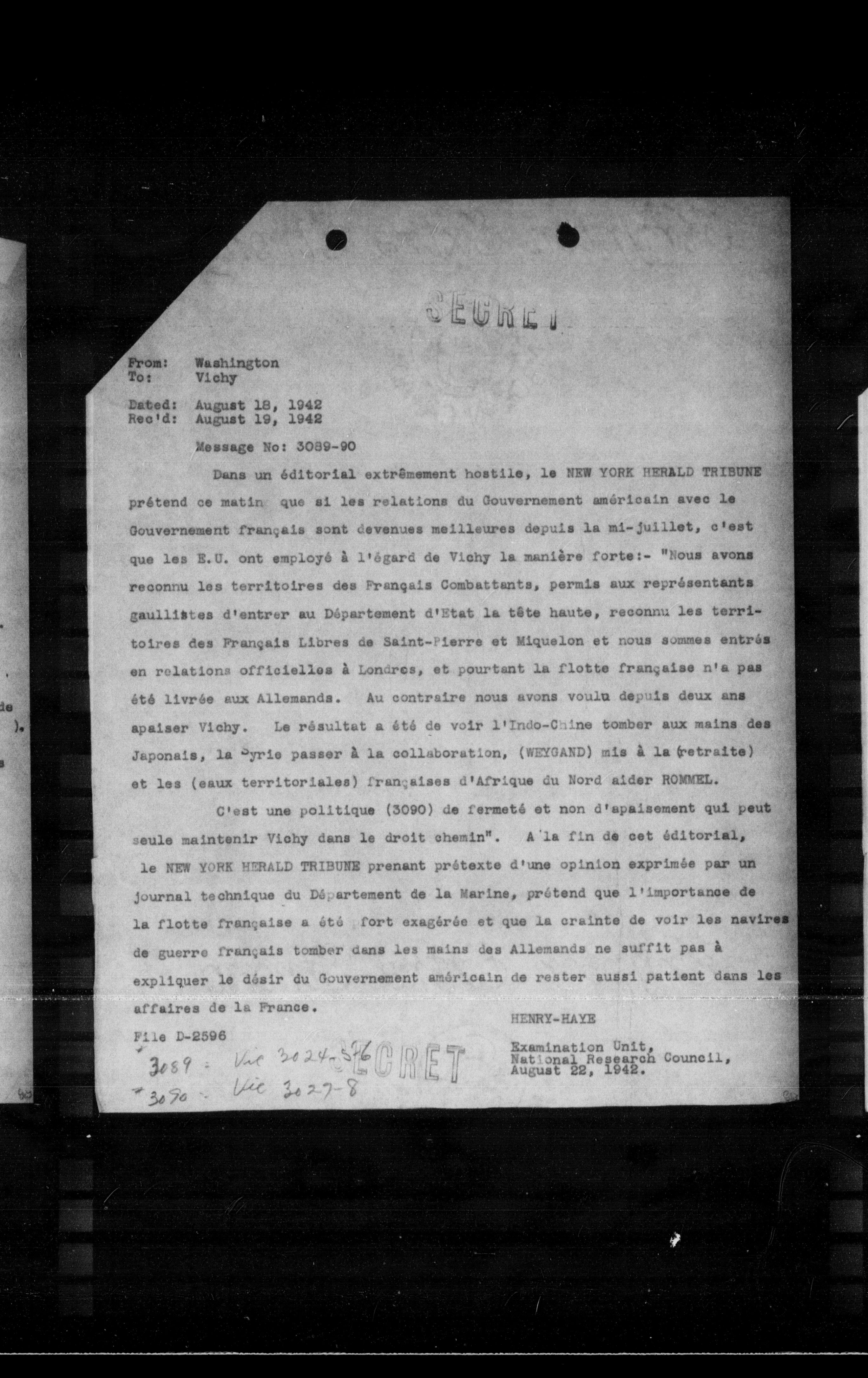 “Reel 17428 - Page 1922,” The Canadian Vichy Intercepts, accessed December 19, 2025, http://omeka.uottawa.ca/examination-unit/items/show/22683.