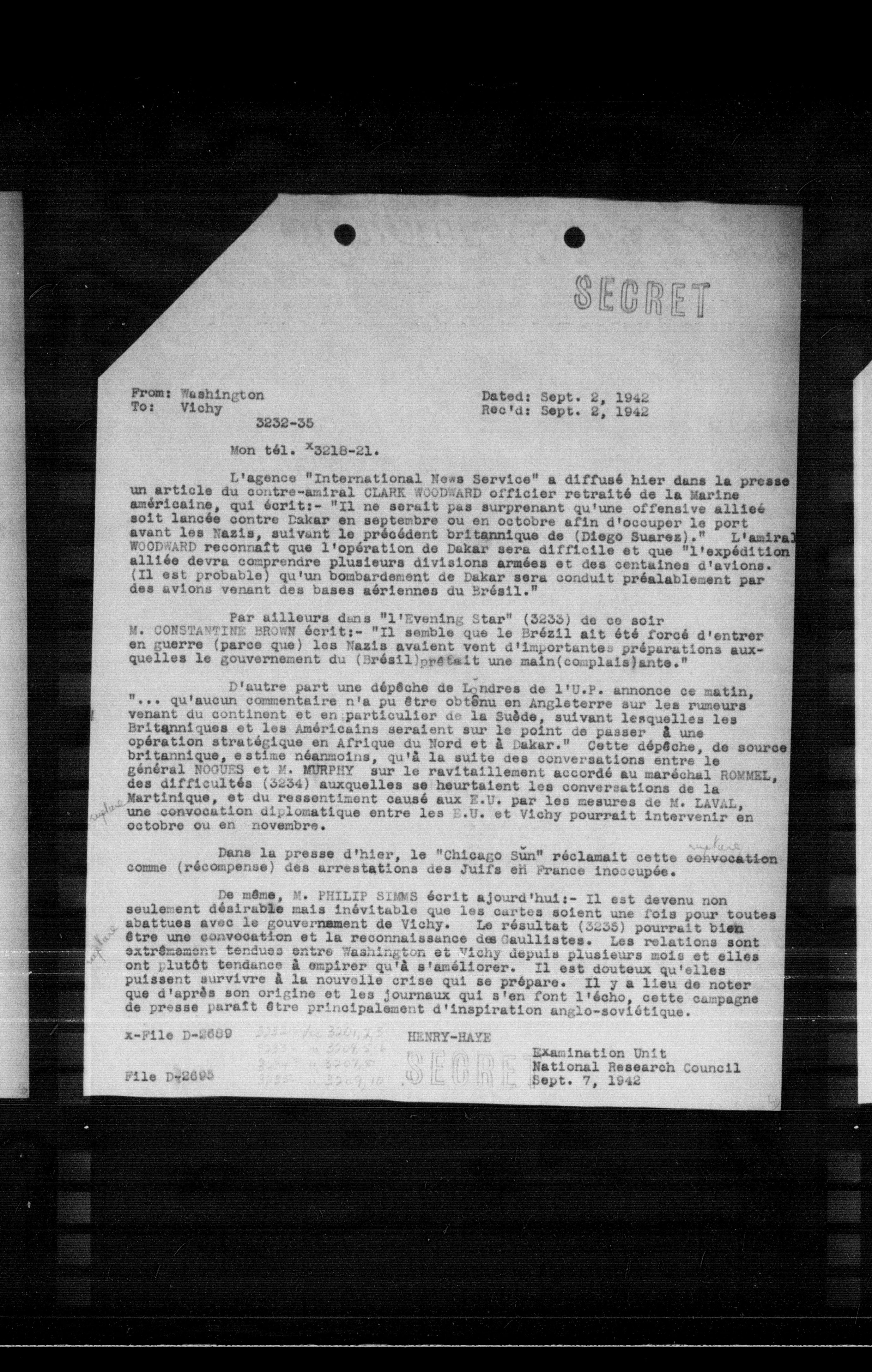 opération stratégique en Afrique du Nord et à Dakar." Cette dépêche, de source