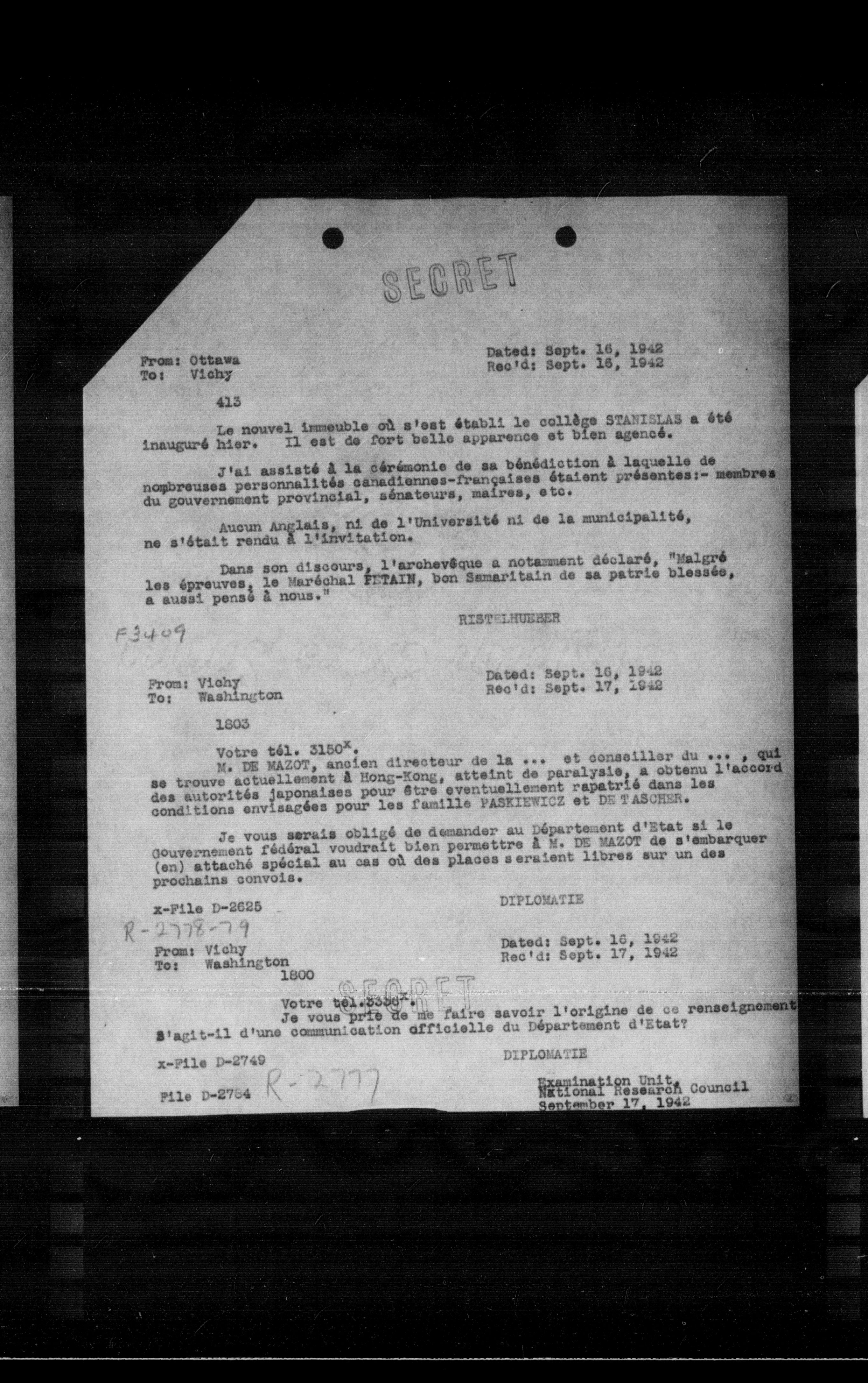R-2778-79 **From:** Vichy **To:** Washington **Dated:** Sept. 16, 1942 **Rec'd:** Sept. 17, 1942