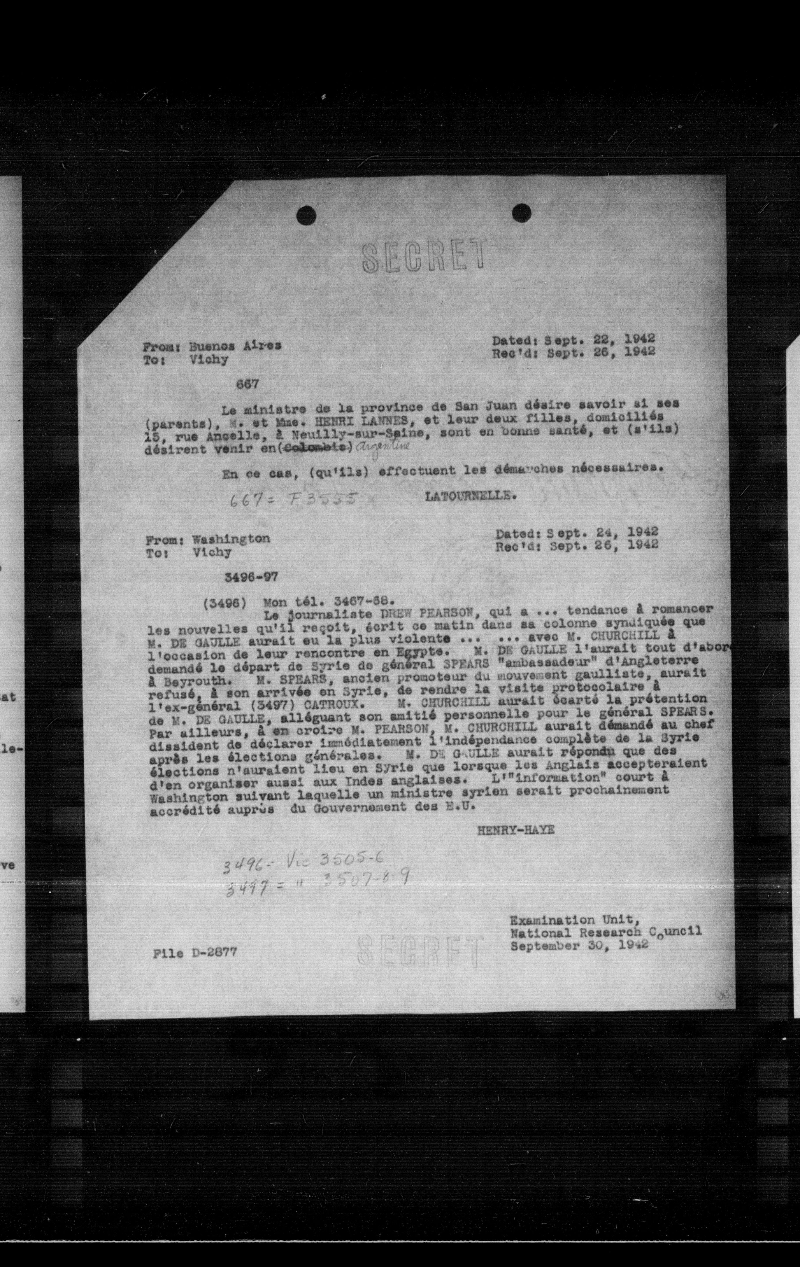 From: Washington To: Vichy