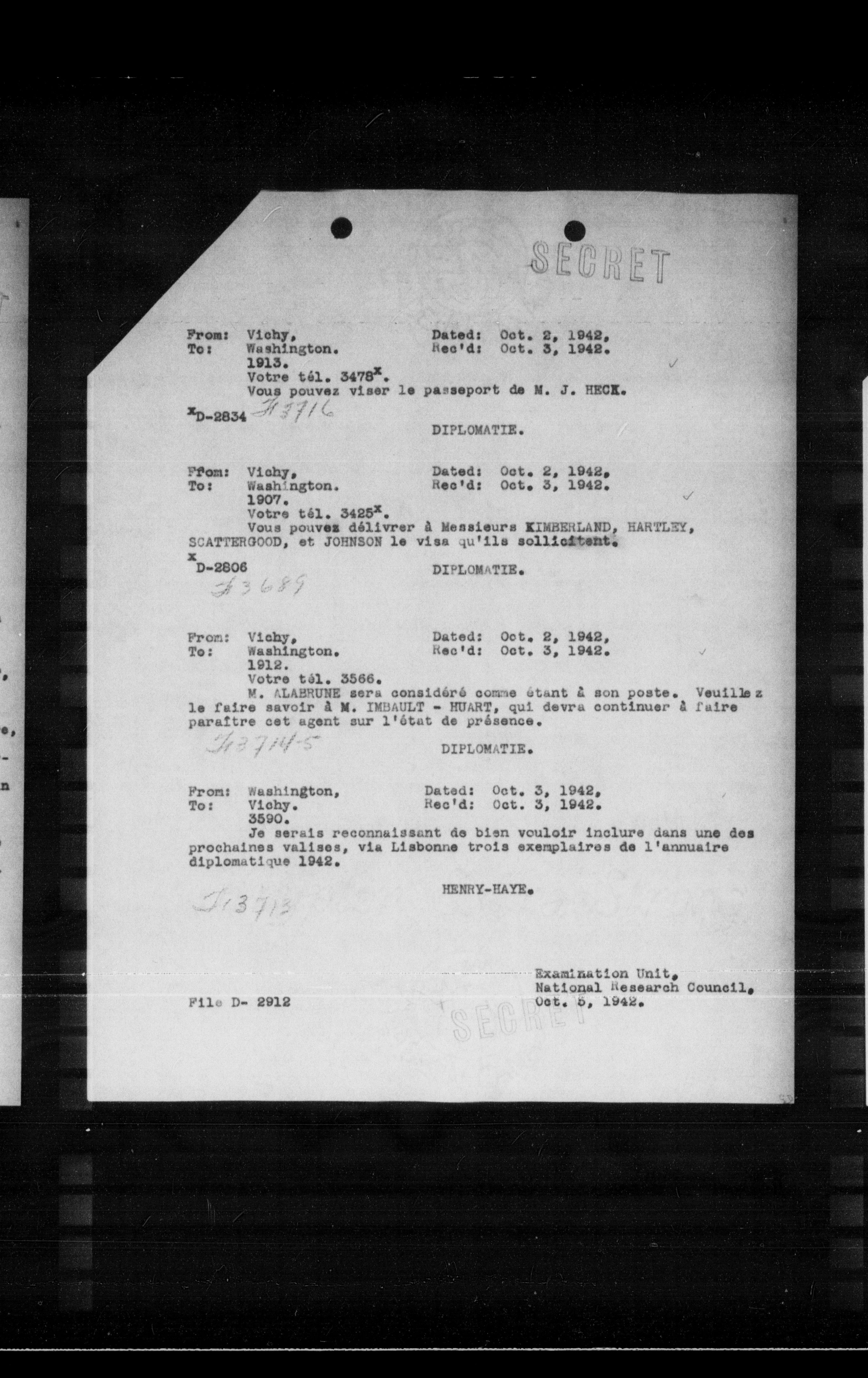 | From: | Vichy, | Dated: | Oct. 2, 1942, |