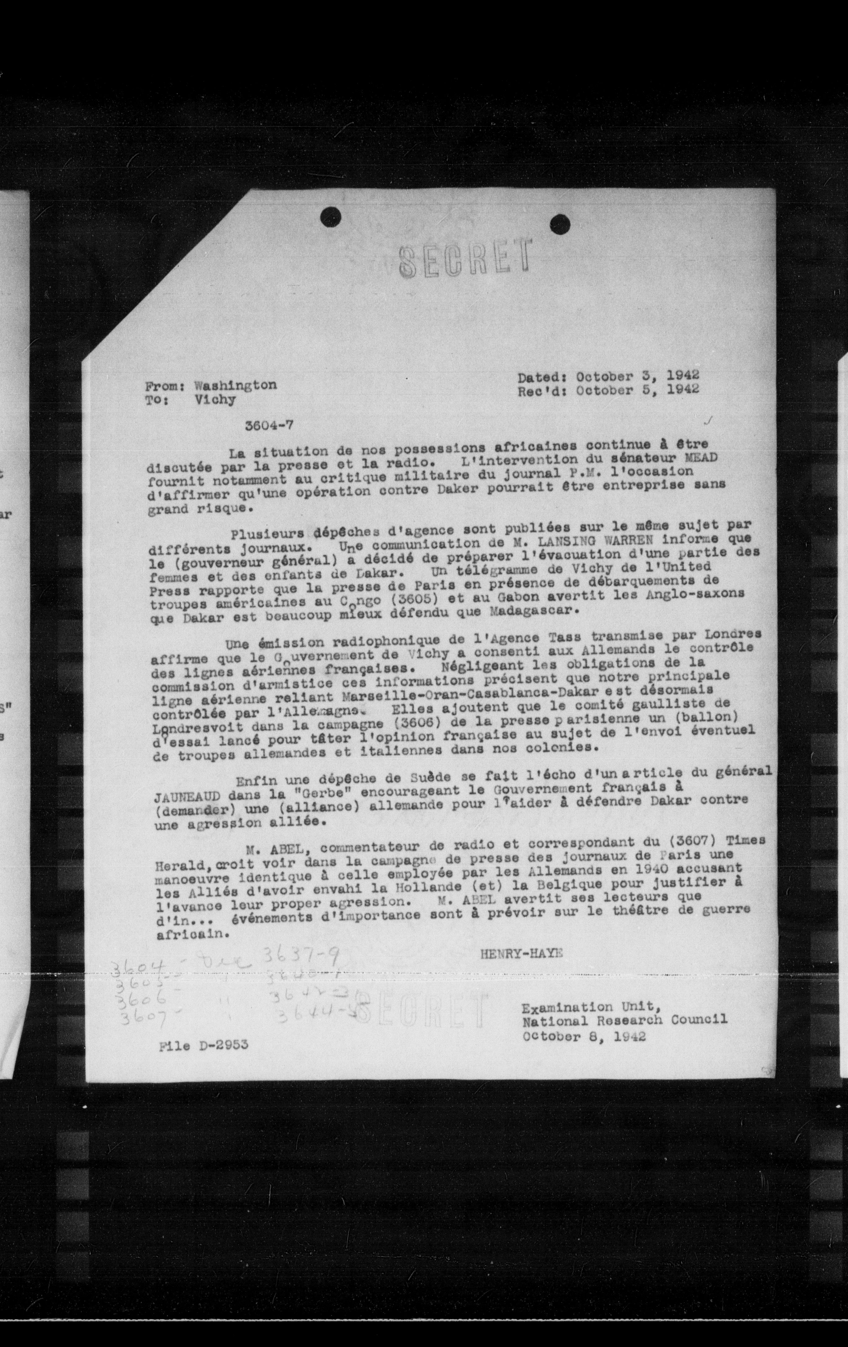 “Reel 17428 - Page 2305,” The Canadian Vichy Intercepts, accessed December 20, 2025, http://omeka.uottawa.ca/examination-unit/items/show/23066.