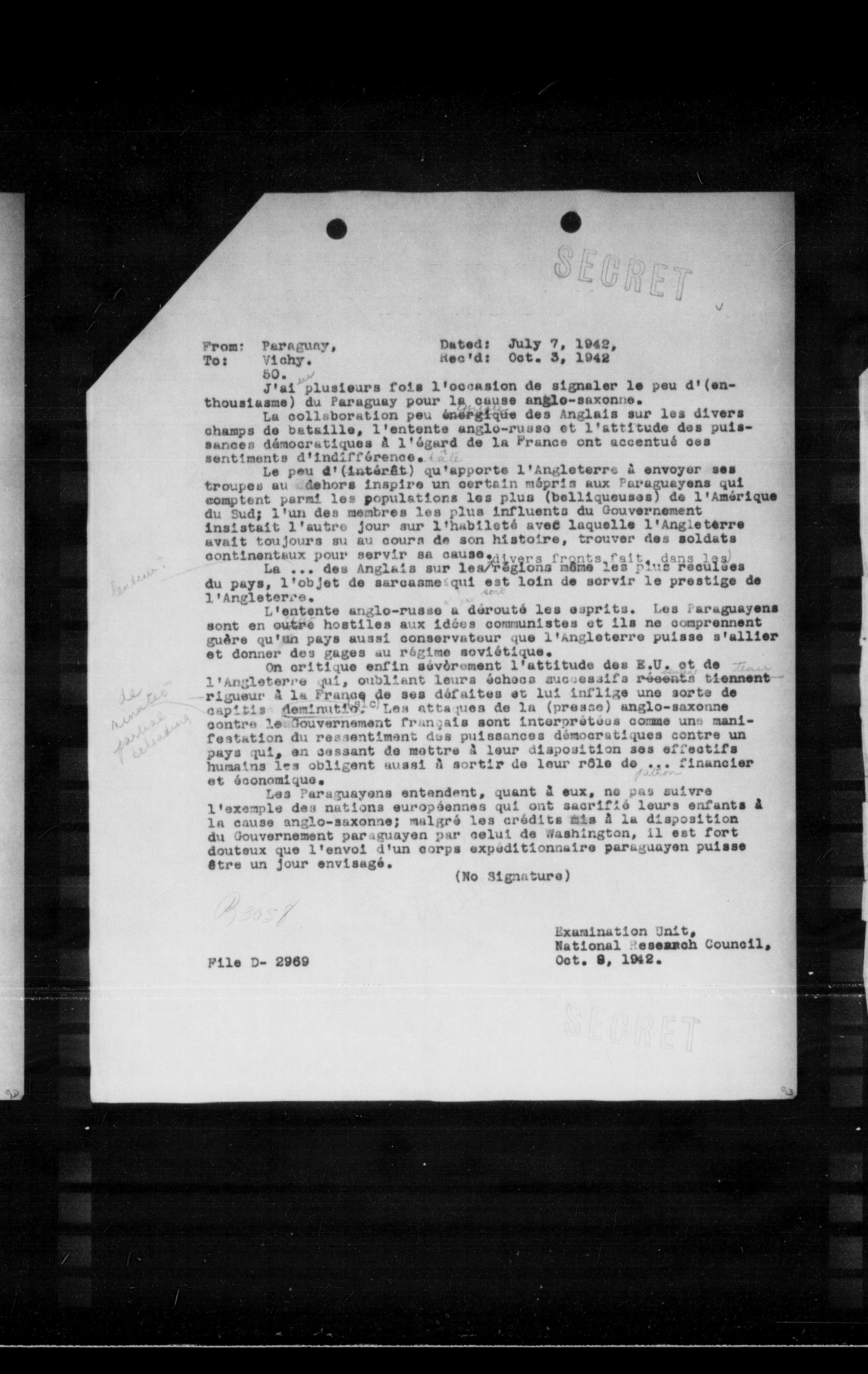 “Reel 17428 - Page 2322,” The Canadian Vichy Intercepts, accessed December 20, 2025, http://omeka.uottawa.ca/examination-unit/items/show/23083.