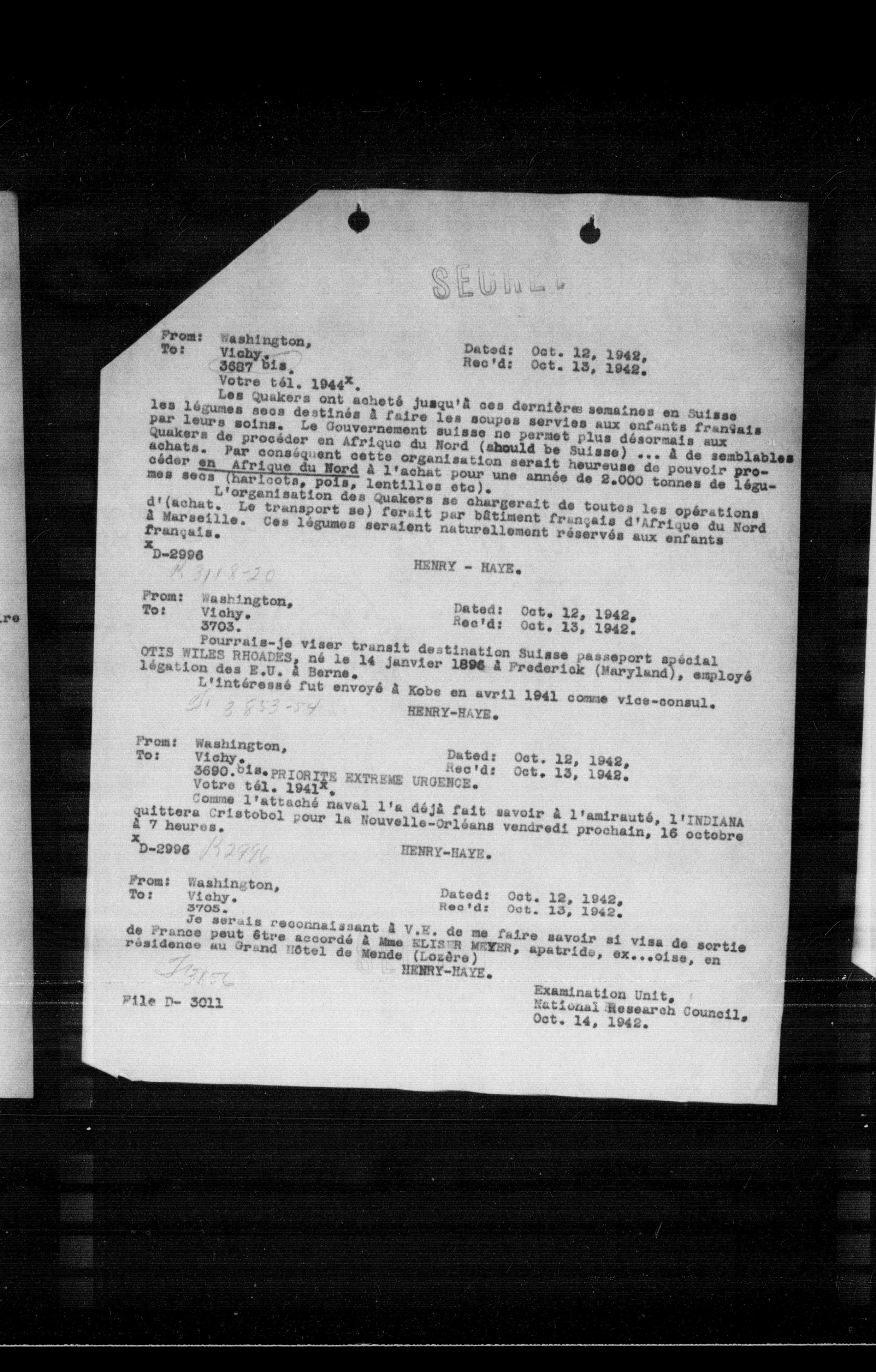 **From:** Washington, **To:** Vichy, **Date:** Oct. 12, 1942, **Rec'd:** Oct. 13, 1942.