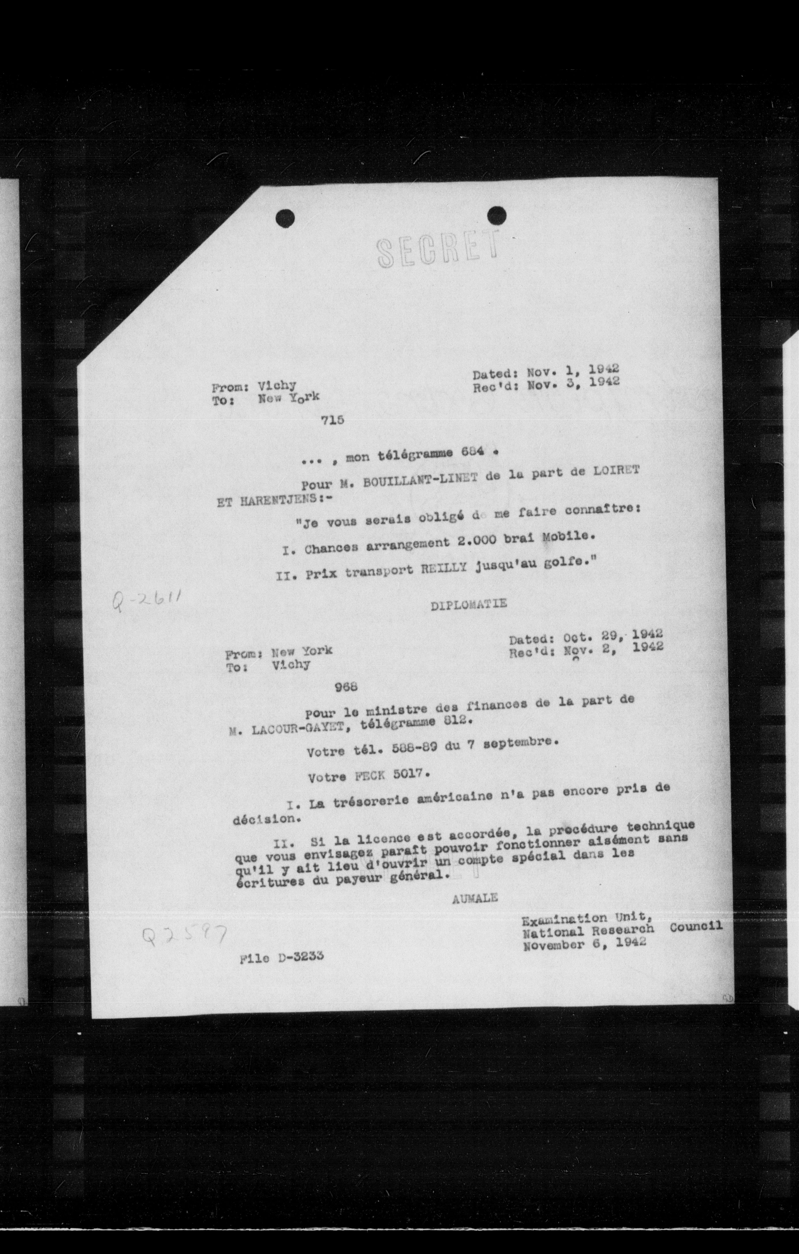“Reel 17428 - Page 2601,” The Canadian Vichy Intercepts, accessed December 20, 2025, http://omeka.uottawa.ca/examination-unit/items/show/23362.