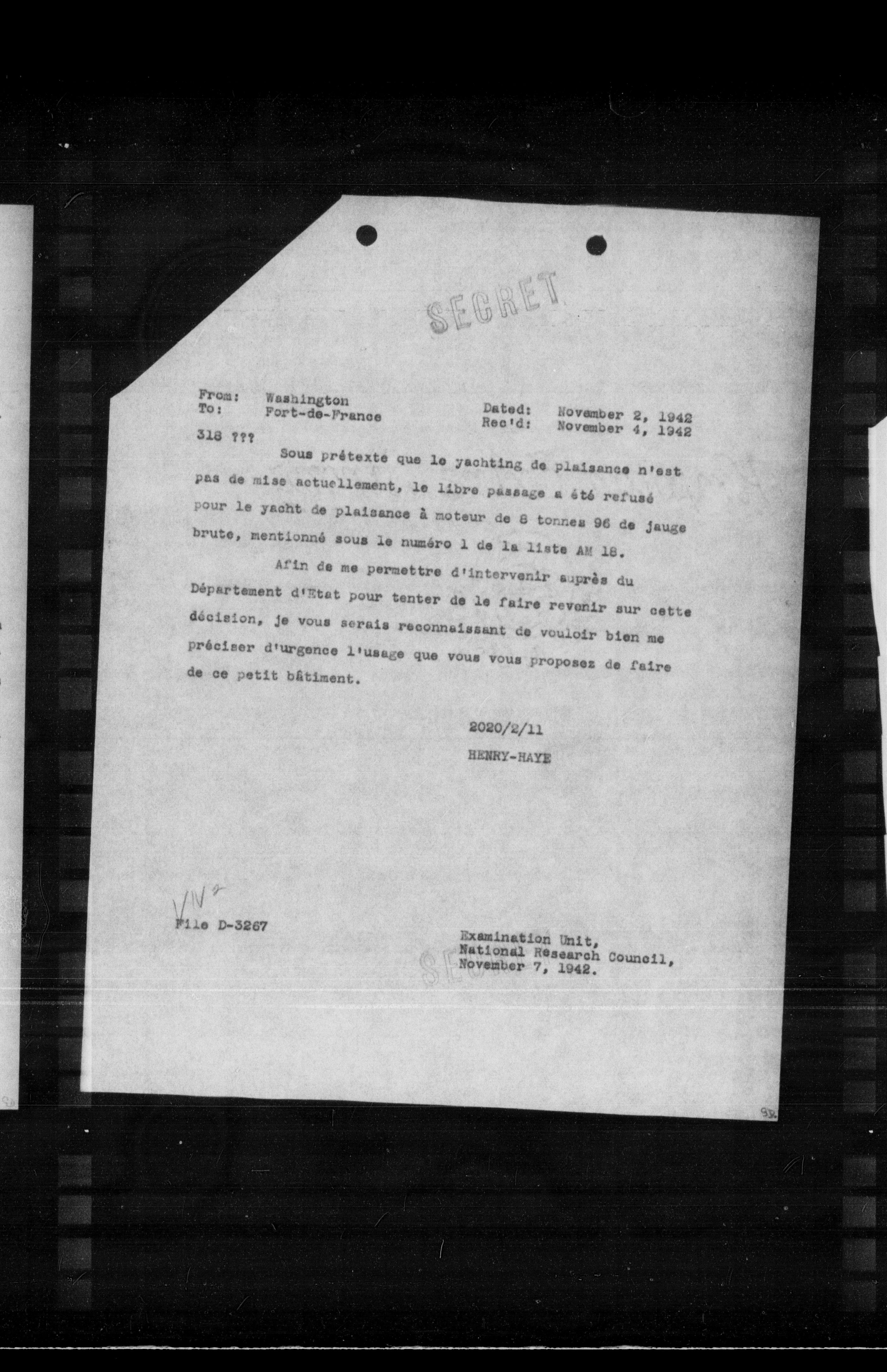“Reel 17428 - Page 2638,” The Canadian Vichy Intercepts, accessed December 20, 2025, http://omeka.uottawa.ca/examination-unit/items/show/23399.