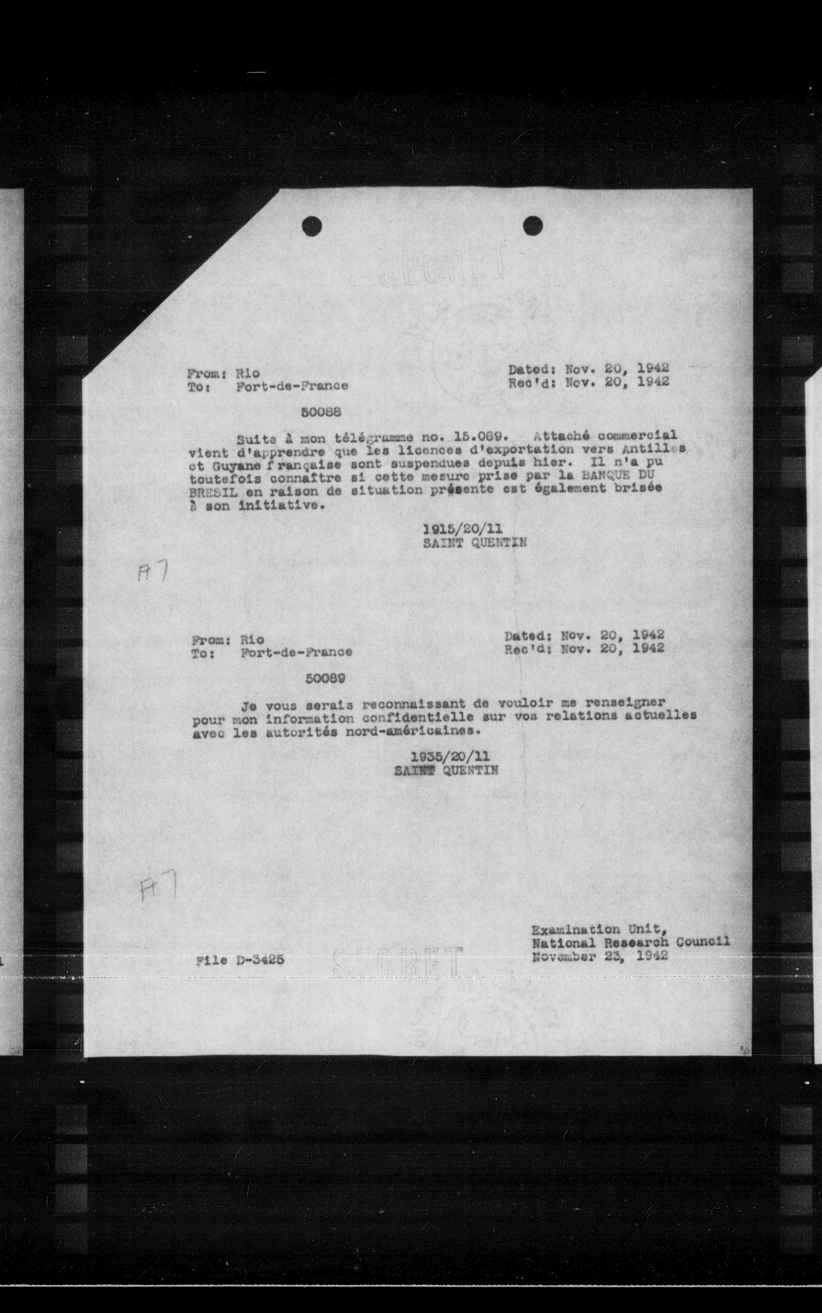 “Reel 17428 - Page 2806,” The Canadian Vichy Intercepts, accessed December 20, 2025, http://omeka.uottawa.ca/examination-unit/items/show/23567.