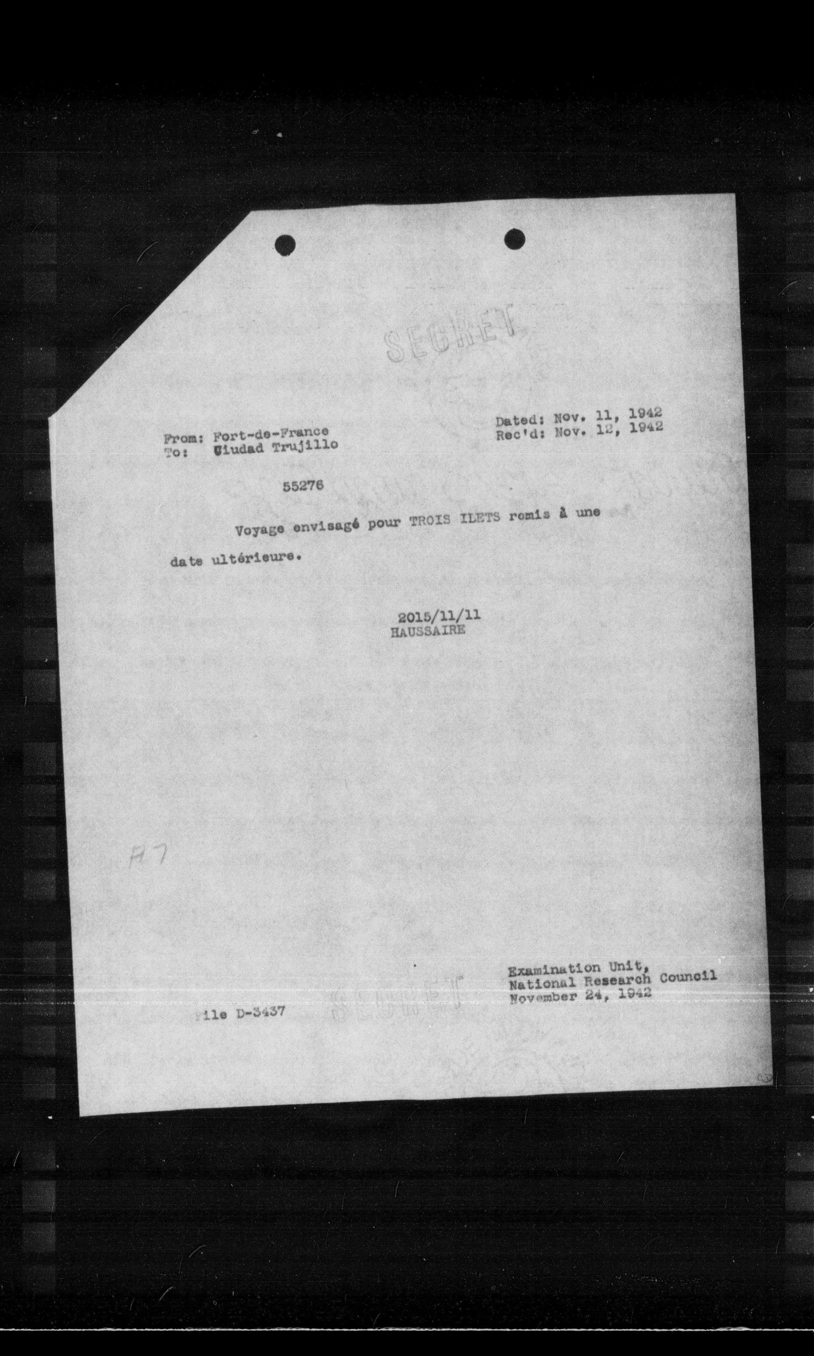 “Reel 17428 - Page 2819,” The Canadian Vichy Intercepts, accessed December 17, 2025, http://omeka.uottawa.ca/examination-unit/items/show/23580.