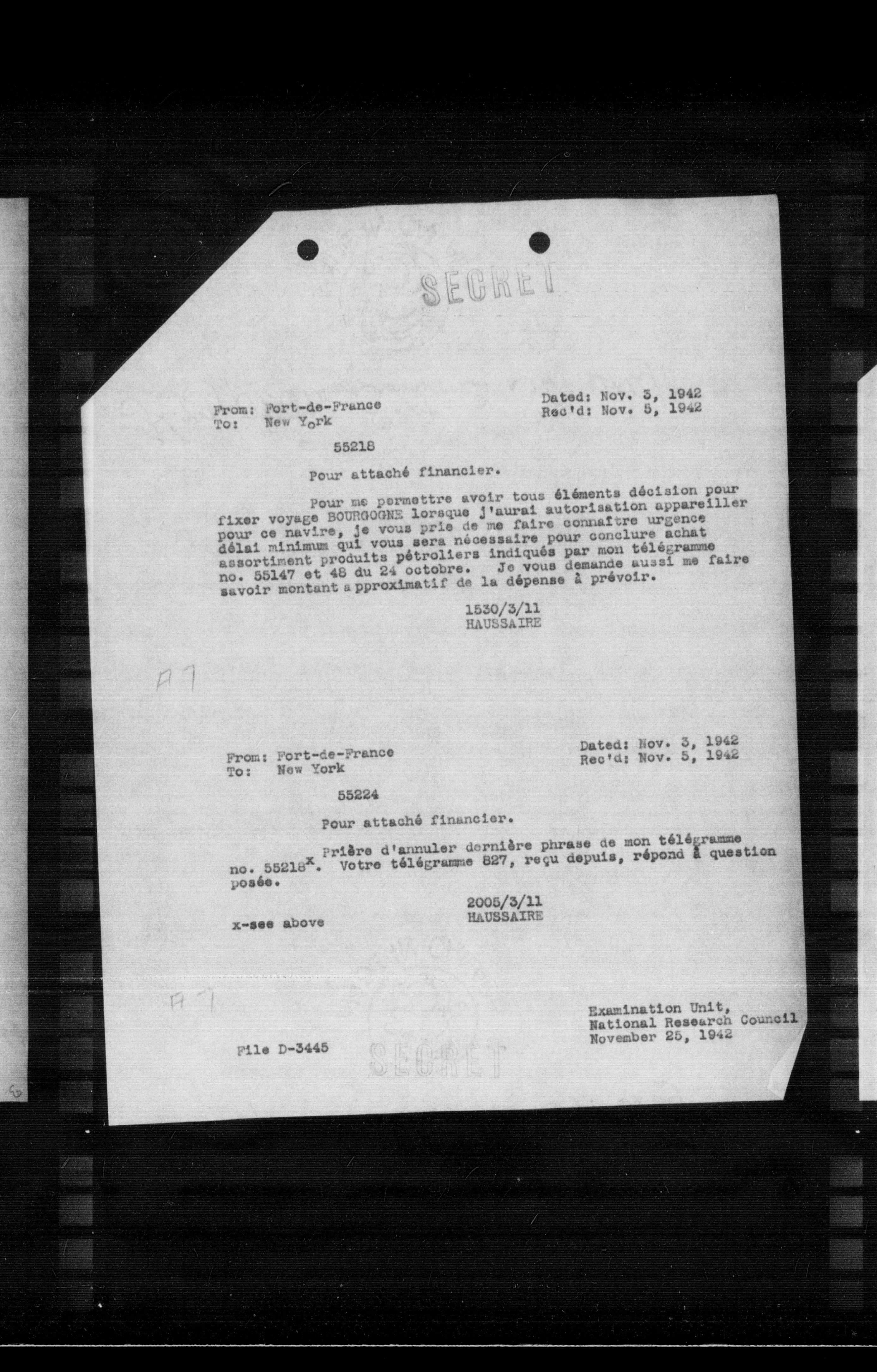 “Reel 17428 - Page 2827,” The Canadian Vichy Intercepts, accessed December 18, 2025, http://omeka.uottawa.ca/examination-unit/items/show/23588.