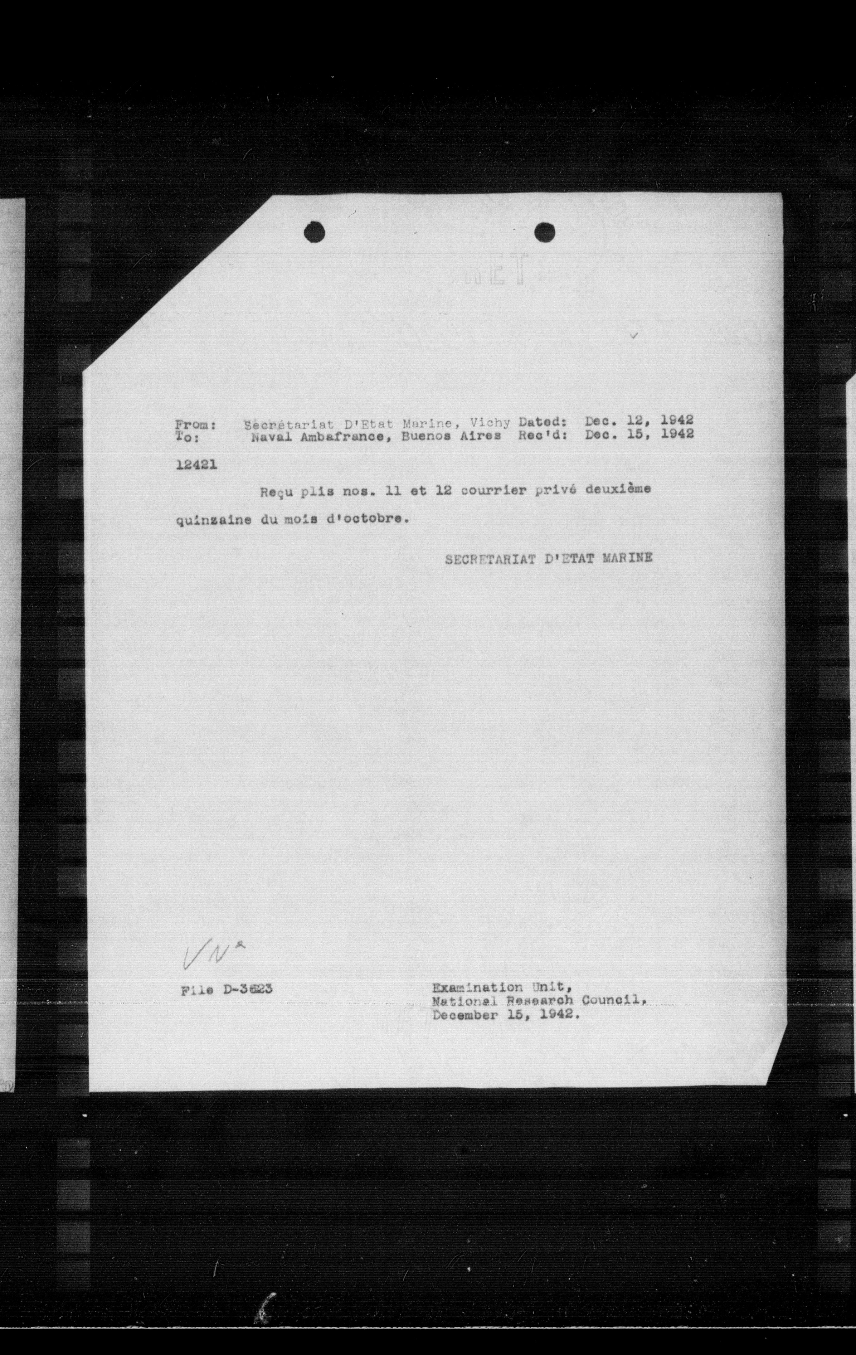 - From: Eschatariat D'Etat Marine, Vichy Dated: Dec. 12, 1942