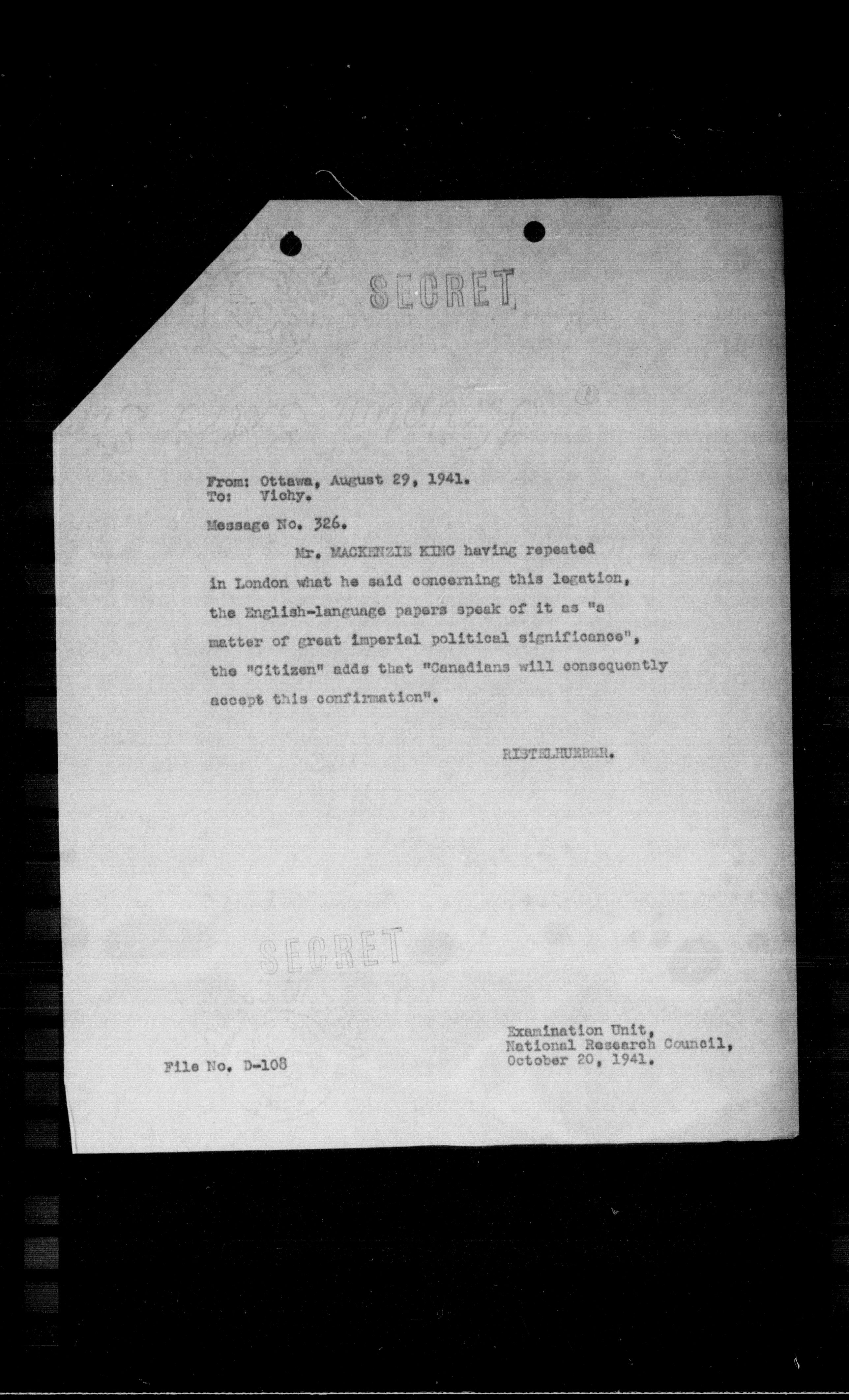 - From: Ottawa, August 29, 1941.