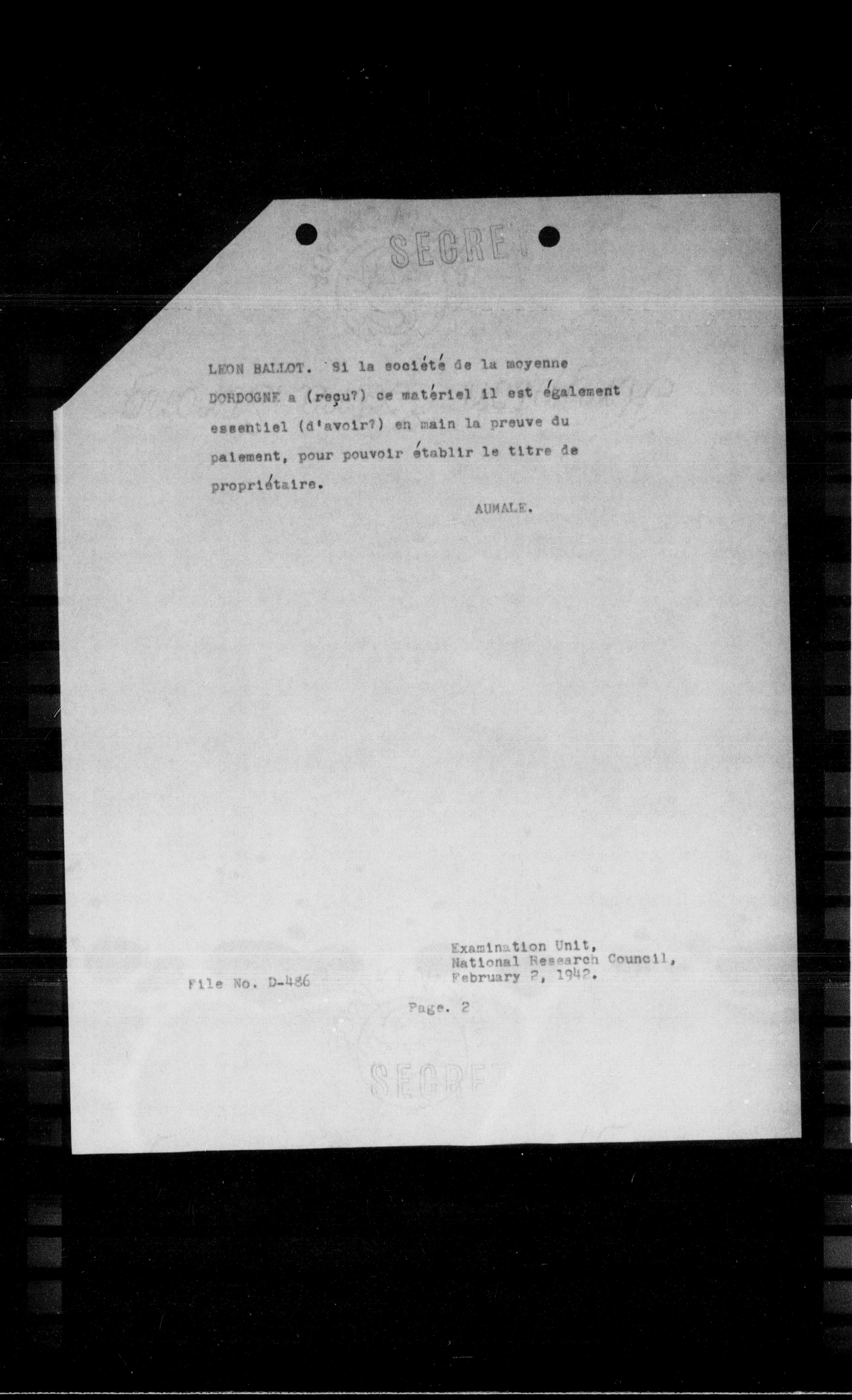 LEON BALLOT. Si la société de la moyenne DORDOGNE a (reçu?) ce matériel il est également essentiel (d'avoir?) en main la preuve du paiement, pour pouvoir établir le titre de propriétaire.