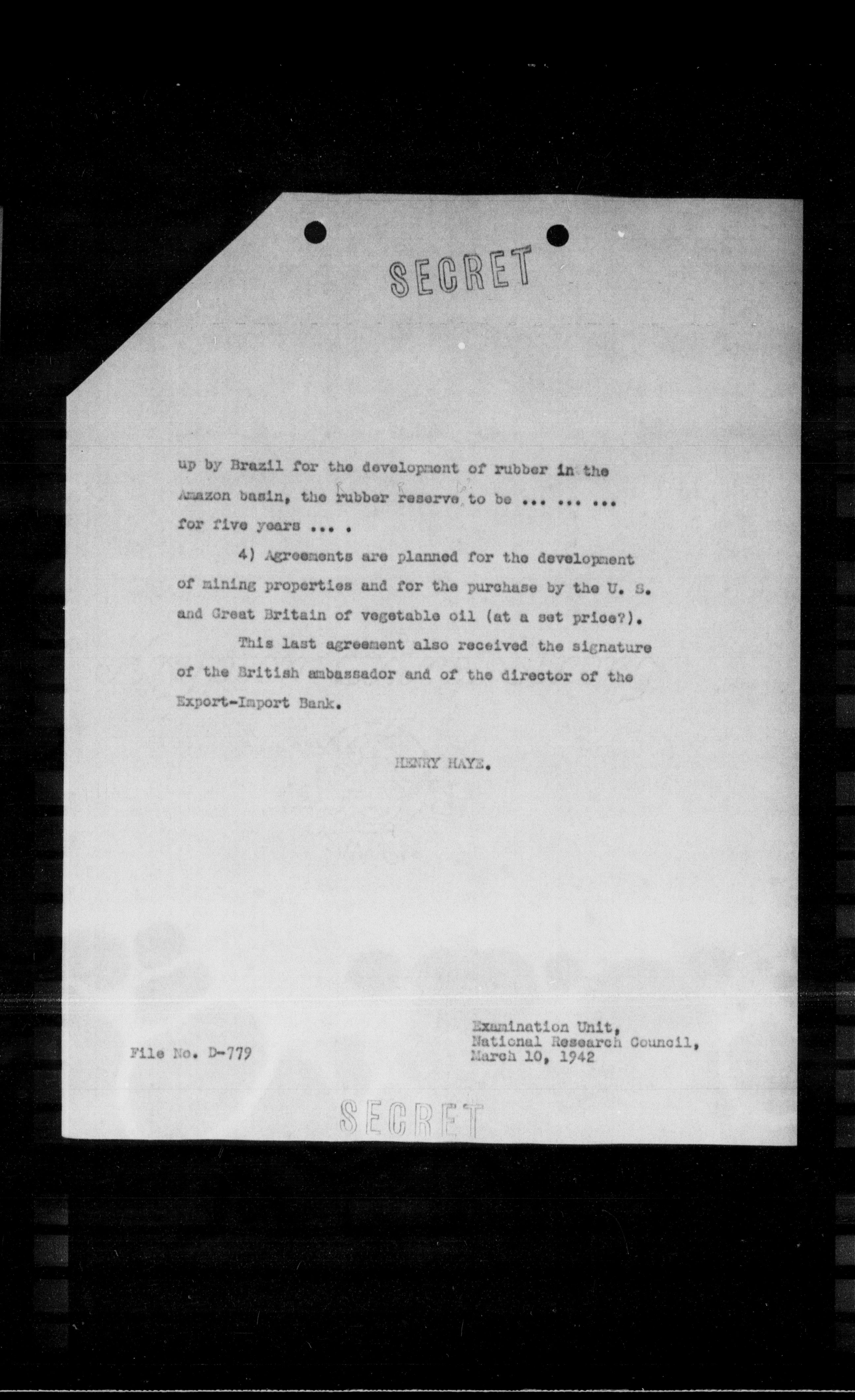 4) Agreements are planned for the development of mining properties and for the purchase by the U. S. and Great Britain of vegetable oil (at a set price?).