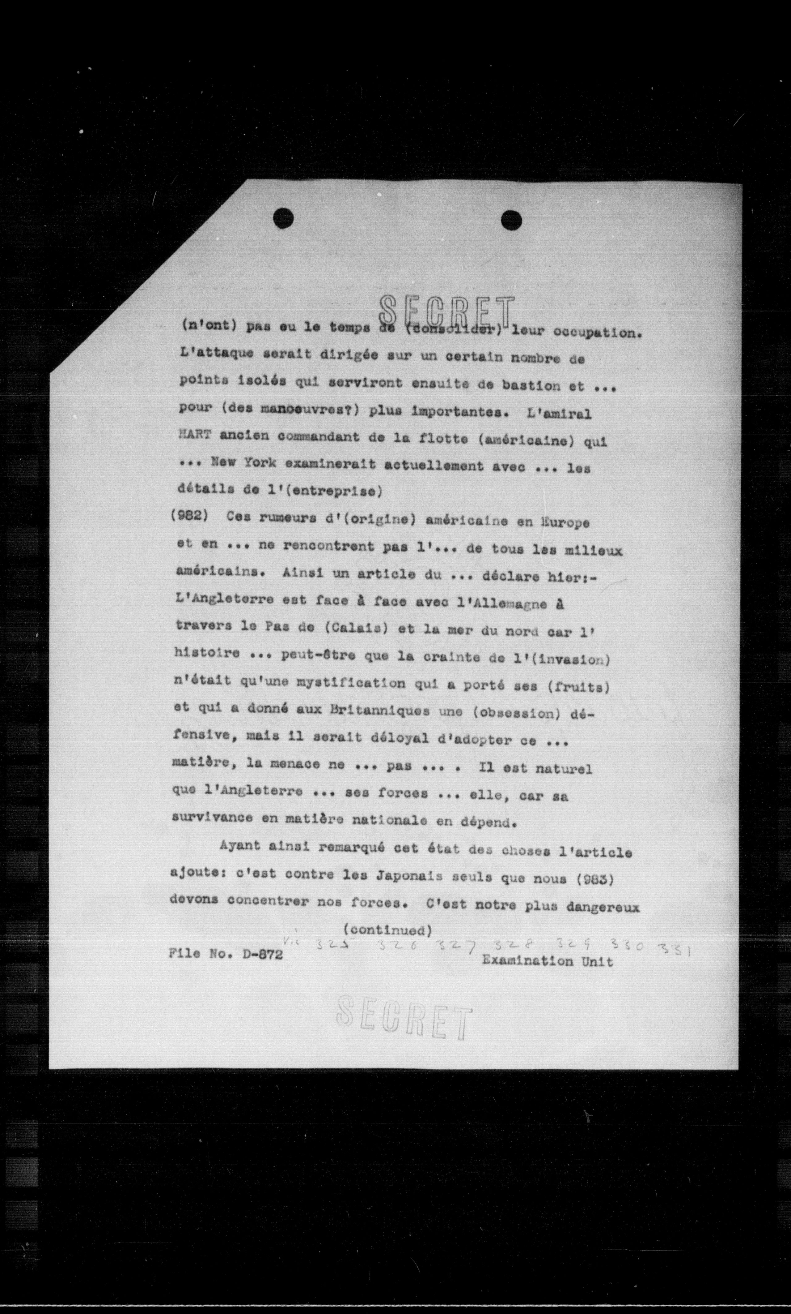 (n'ont) pas eu le temps de (consolidet) leur occupation. L'attaque serait dirigée sur un certain nombre de points isolés qui serviront ensuite de bastion et ... pour (des manoeuvrest) plus importantes. L'amiral HART anolen commandant de la flotte (américaine) qui ... New York examinerait actuellement avec ... les détails de l'(entreprise)