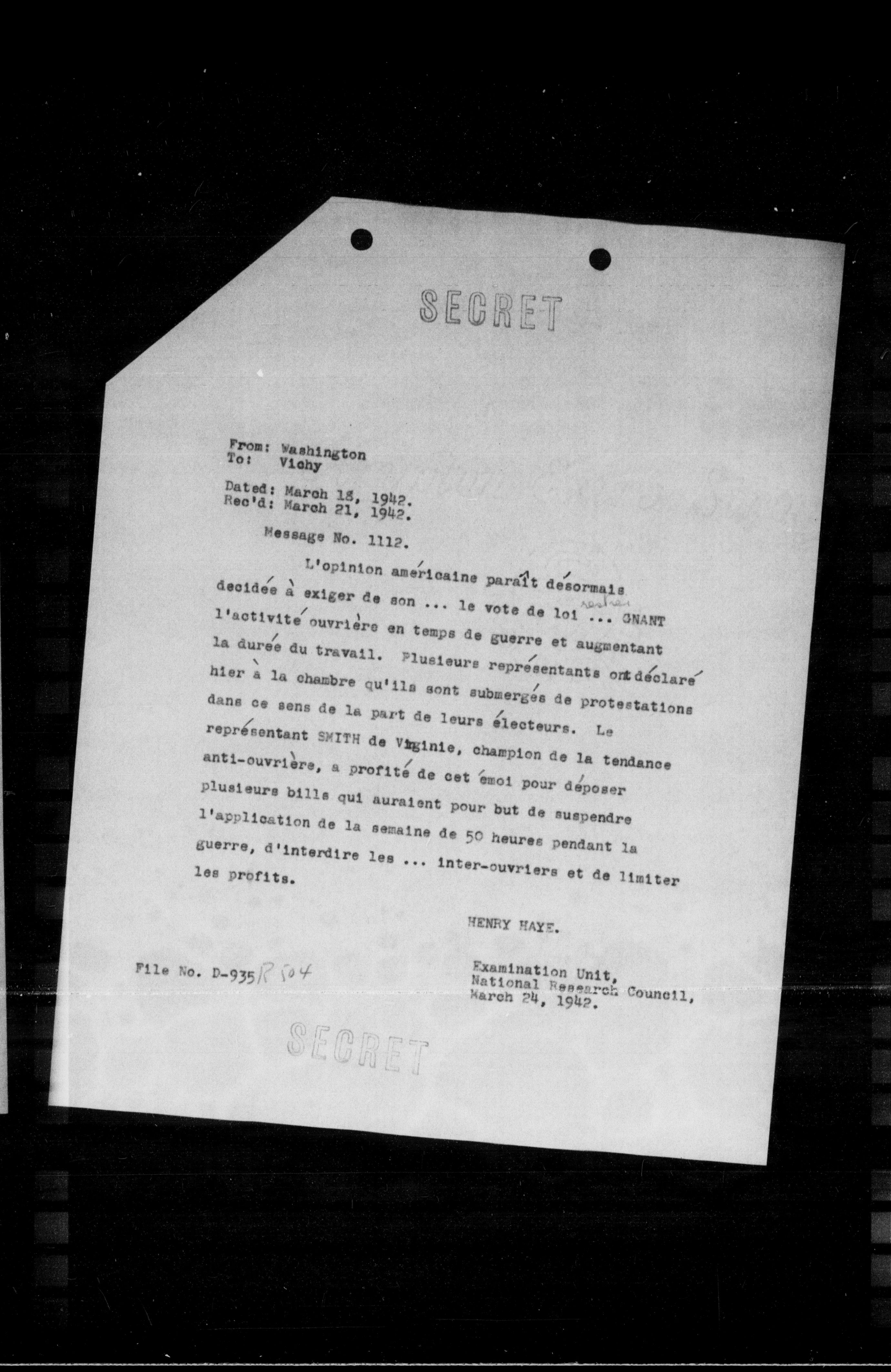 Rec'd: March 21, 1942.