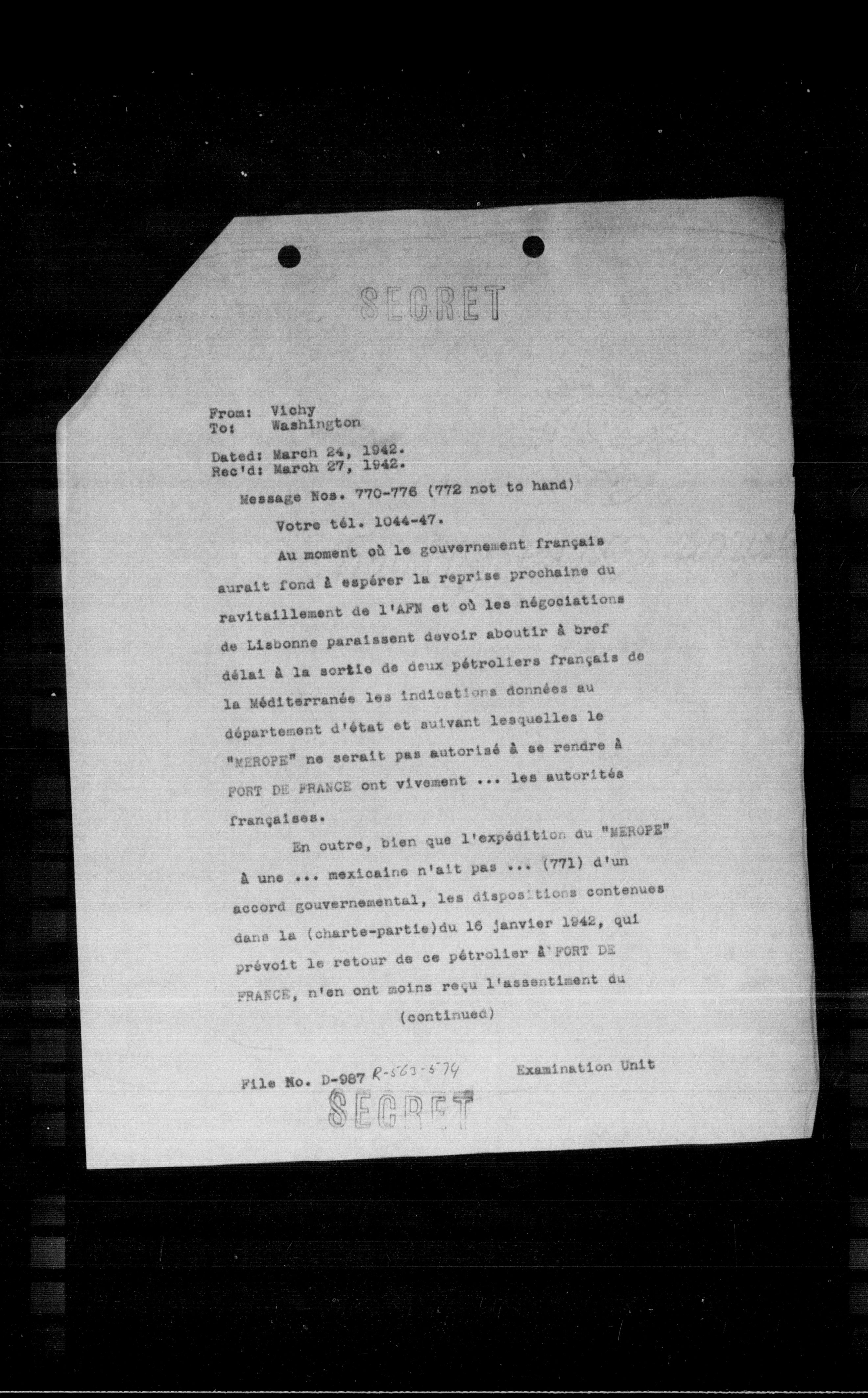 Message Nos. 770-776 (772 not to hand)