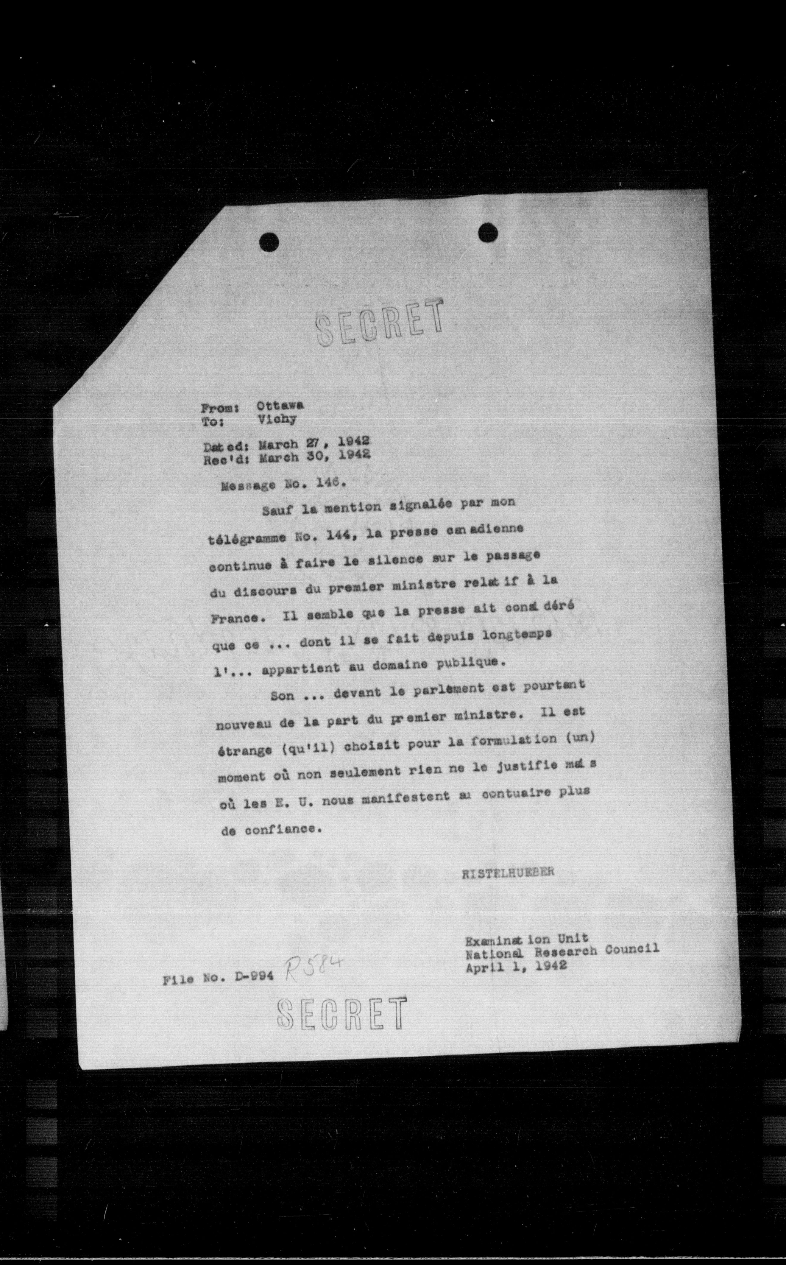 “Reel 17429 - Page 0945,” The Canadian Vichy Intercepts, accessed December 18, 2025, http://omeka.uottawa.ca/examination-unit/items/show/24842.