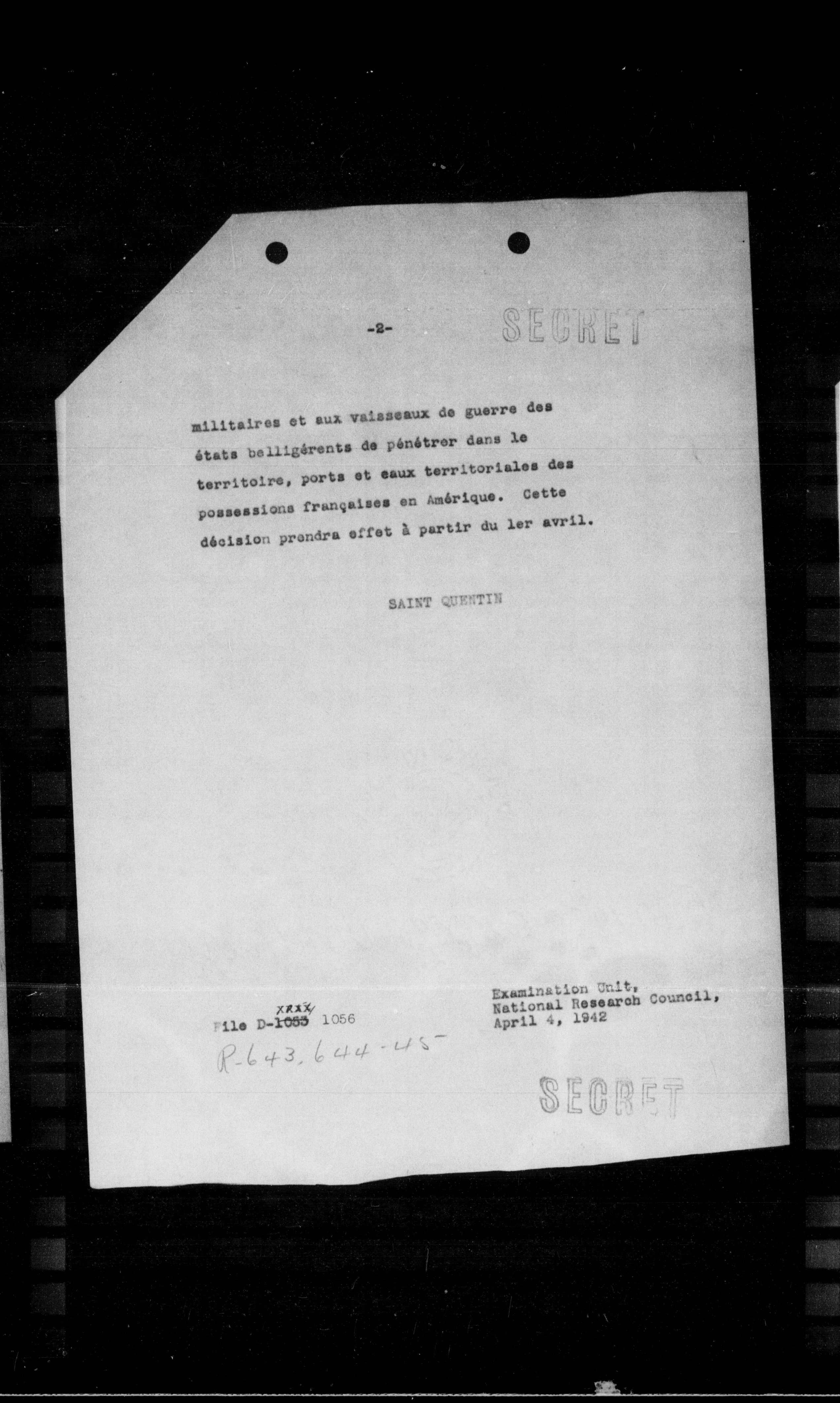 **Examination Unit, National Research Council, April 4, 1942**