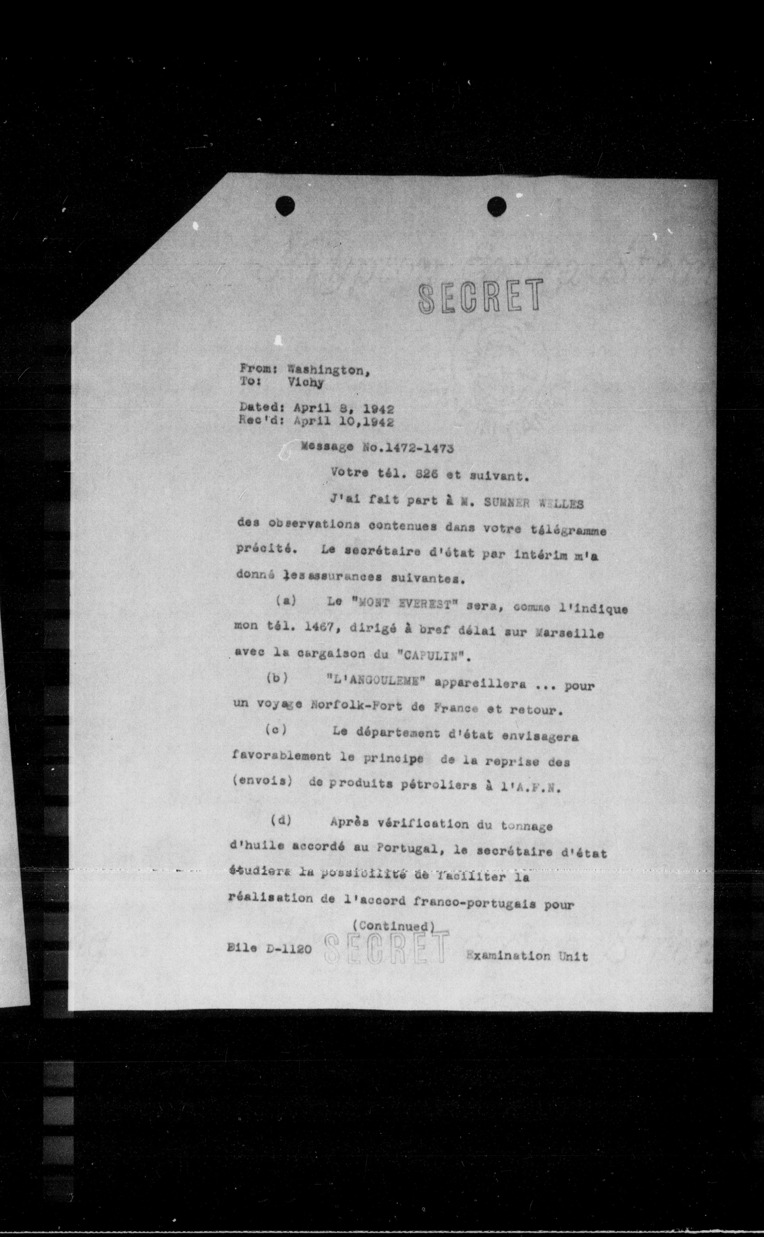 From: Washington, To: Vichy