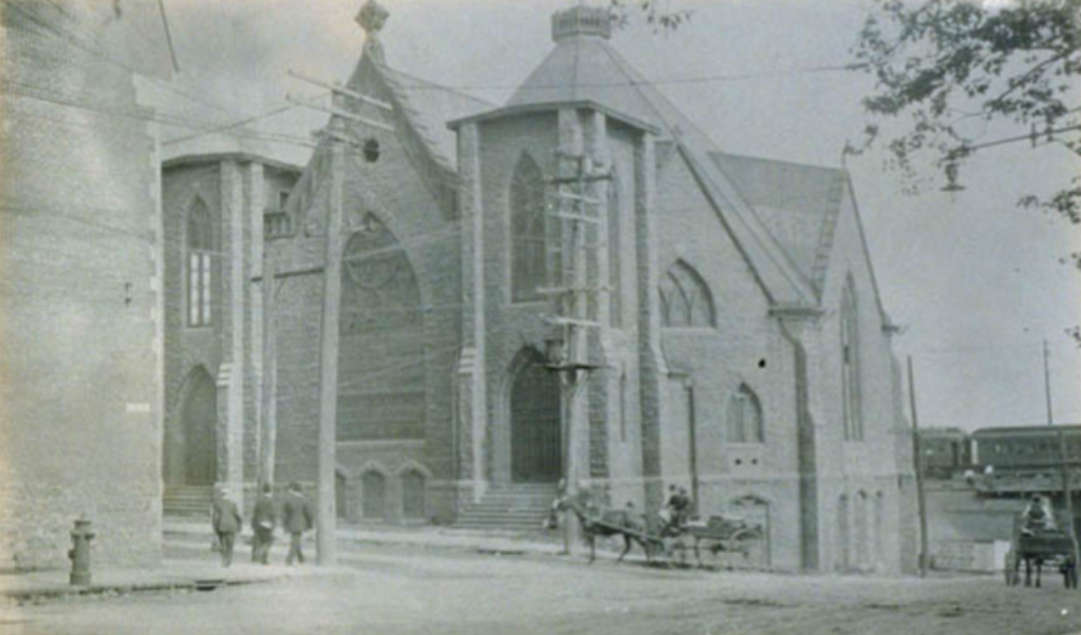 The Olivet Baptist Church was the second location used by the United Union Church as a place to congregate. This was a big step for the church because it meant they were gaining enough participants and enough funds to afford the upgrade from the Welsh Dance Hall to the Olivet Baptist Church. This building no longer exists, but it was located almost exactly where the Bell Centre stands today.