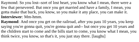 Raymond Coker was a sleeping car porter in 1953 and talks about how his life was before the Fair Employment Practices Act and expresses how difficult financial life was then for a Black man trying to support his family. He recalls wanting to make a career out of being a musician but explains why he did not end up fully pursuing it, mainly because it just wasn't a realistic option. Due to the fact that he could not join a union, he explains how he had to rely on a white band to take him on but even those opportunities were a one night deal. After a good while of struggling, he became a sleeping car porter and could never find a realistic out.