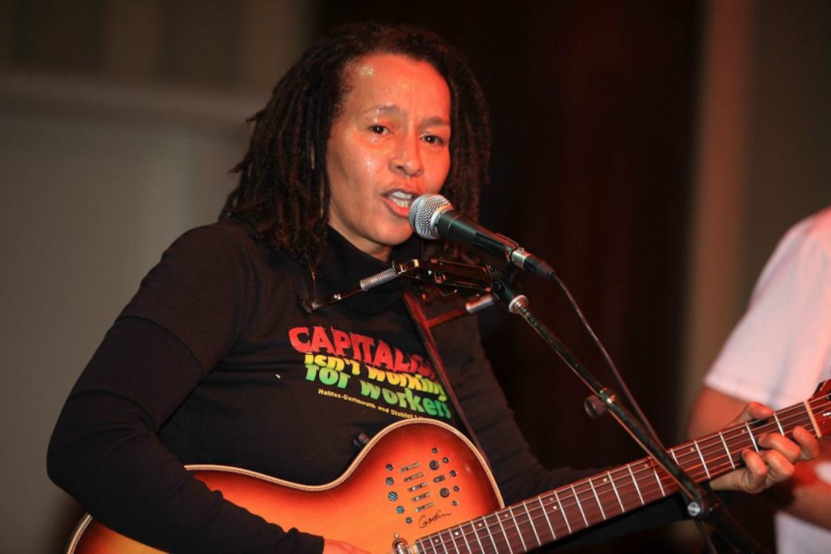 Musician and singer, Faith Nolan, performing her song "Jailhouse Blues" at the OFL.