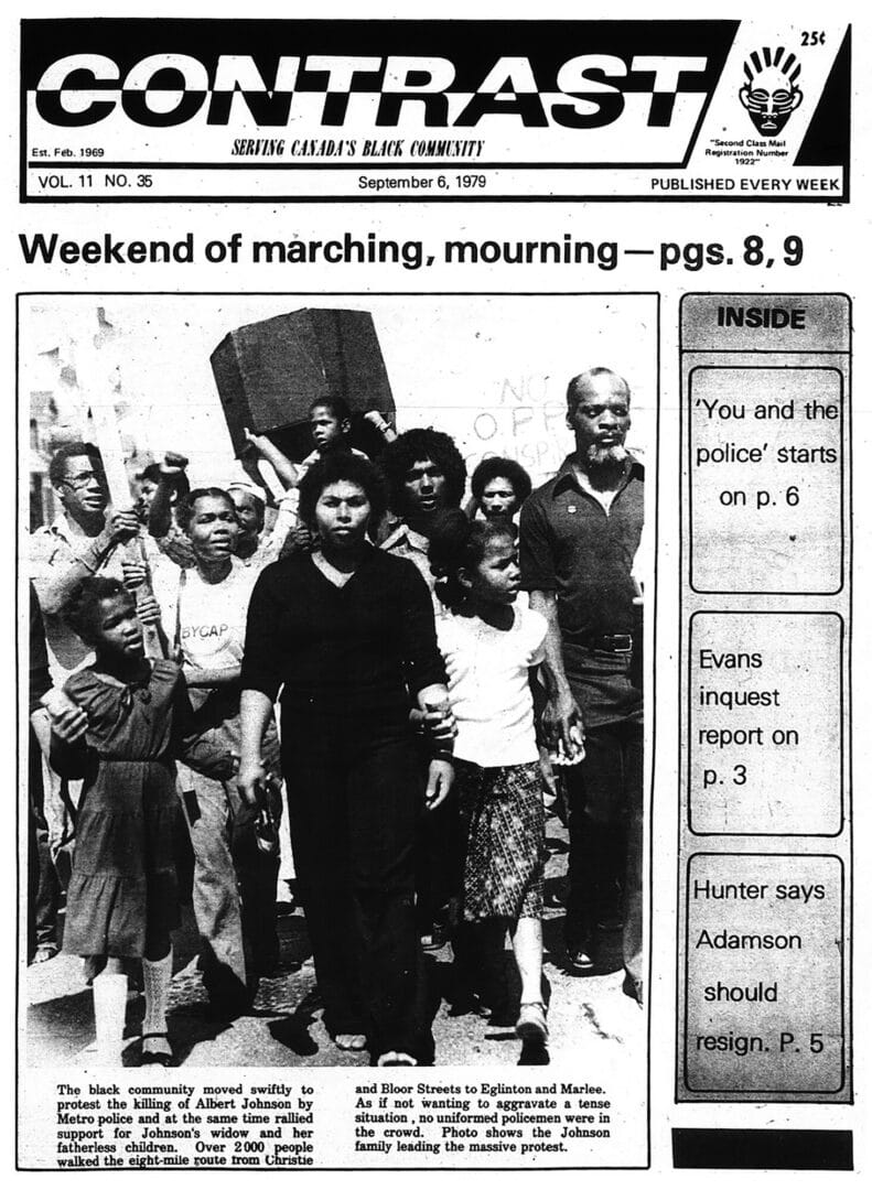 Contrast, “Weekend of marching, mourning -- pgs. 8, 9,” Black Canadian History Exhibit, accessed December 5, 2025, http://omeka.uottawa.ca/mathieu-black-canadian-history-exhibit/items/show/230.