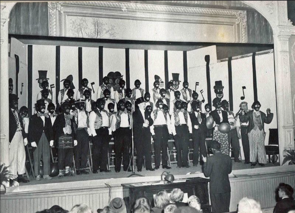 Barber, Bill. Orangeville Lions Club Minstrel Show. Flickr. 1950. Photograph. https://www.flickr.com/photos/wdwbarber/544796338/in/photolist-Q9dYj-2onXb2r-2nzoess-2nQBec2-BFrw5q-HcEsKL-2ndsRoe-C8qQAA-2nnpGaK-2nnNvKs-2nocDWz-2nogoJs-BdeNCK-2nBVcSm-Bz4a6R-2nomhjC-2no7Yix-2nehris-2ne4Drb-By5RNC-Bce9Rv-AyeEnZ-aaKMRN-BdeeCh-BQosL5-BxSeKF-2oM92zk-3GdFtq-BCRC2w-2nn8DMY-2nnnaRn-BtVnxG-6hELmE-aaGYyK-AHDpJq-BBdTaR-BXABgQ-2qgpiR4-BxRqyq-2mLRWt1-ByDRLX-C3ayer-BY2cxX-B1vCro-B1ZyQt-BDobs7-2ne9f3H-B38Zmb-Bz49Lc-CaJCmr/