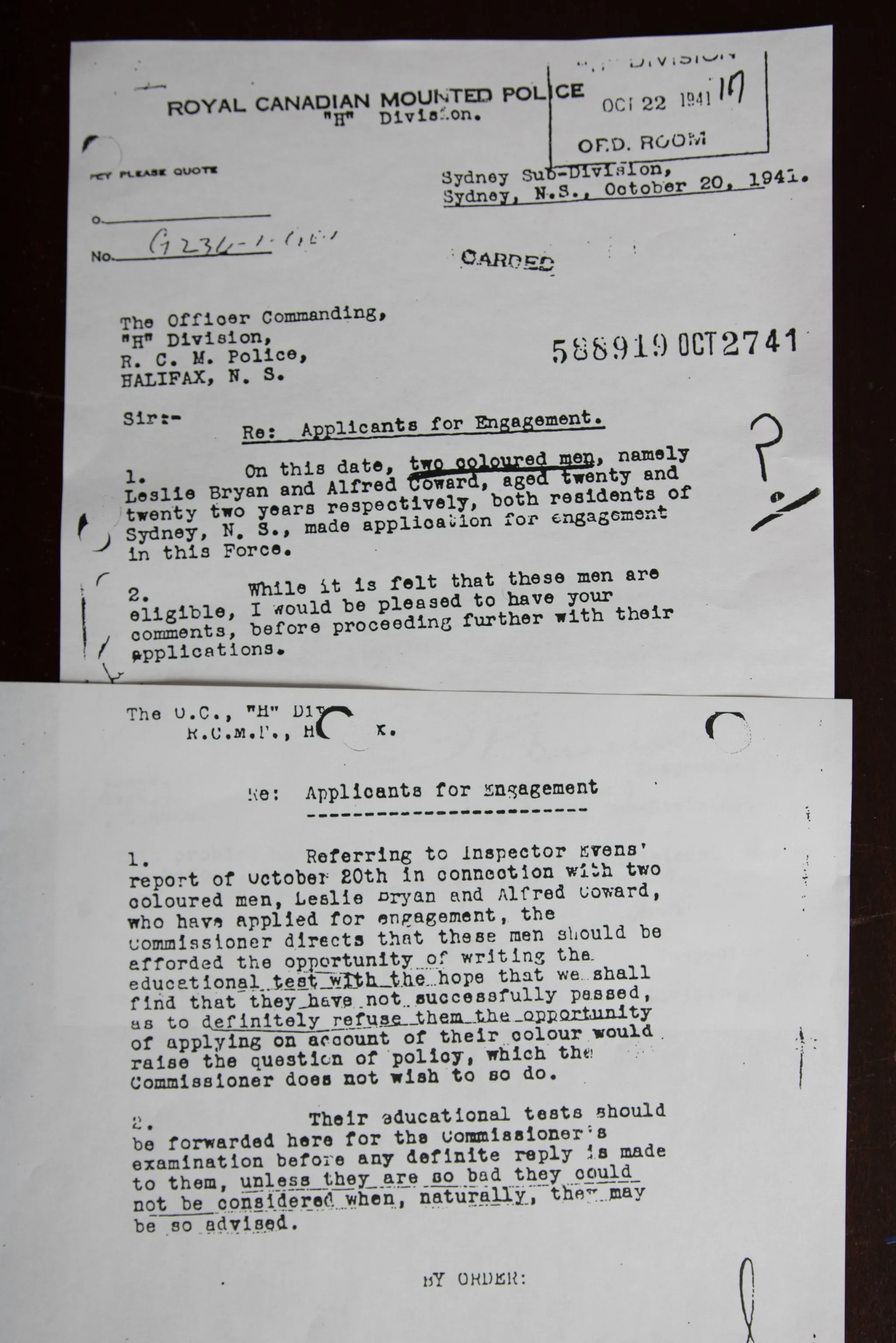 RCMP - Officer Commanding "H" Division Halifax & Sydney Sub-Division, “Re: Applicants for Engagement - 1941,” Black Canadian History Exhibit, accessed December 6, 2025, http://omeka.uottawa.ca/mathieu-black-canadian-history-exhibit/items/show/306.