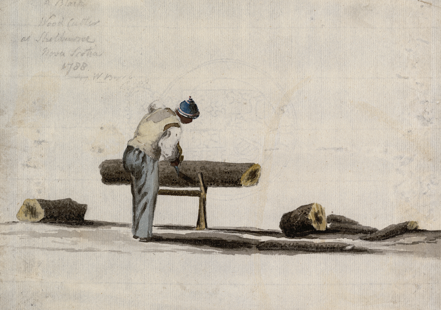 Booth, William. A Black Wood Cutter at Shelburne, Nova Scotia. 1788. Watercolour on paper. Library and Archives Canada, Coverdale Collection of Canadiana.